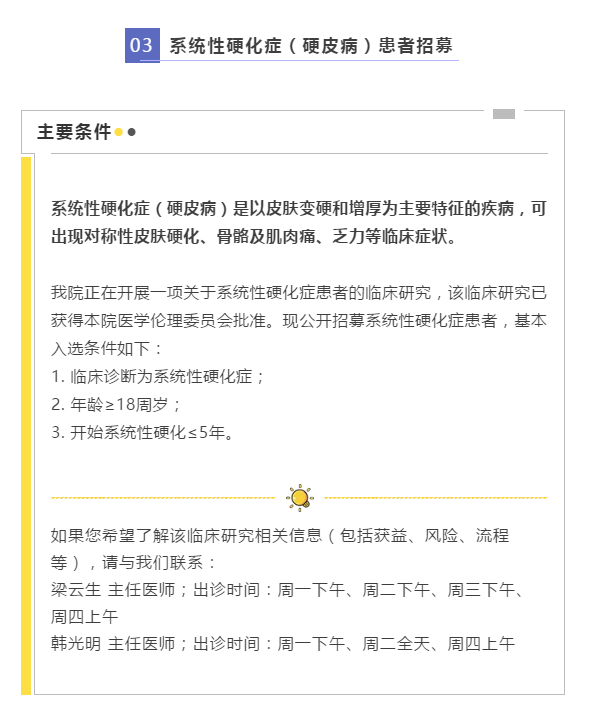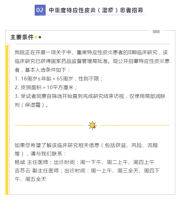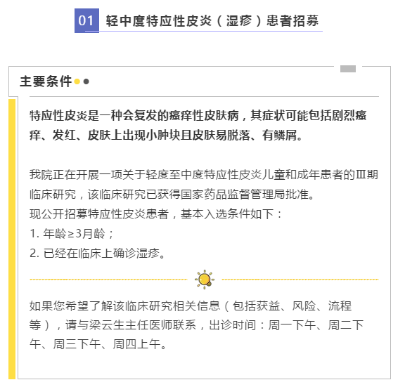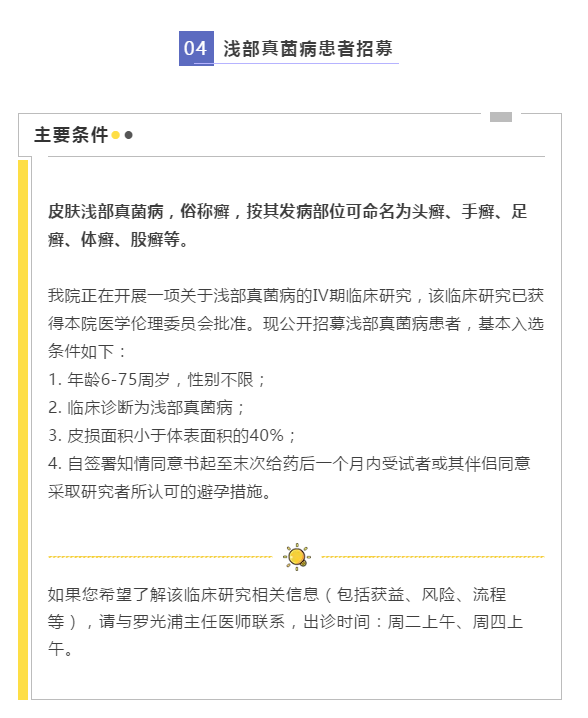 【招募】湿疹、硬皮病、浅部真菌病及银屑病患者招募,符合条件者可享治疗优惠!