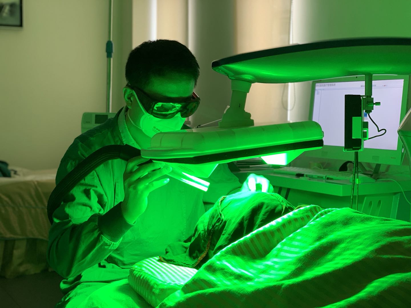 光动力技术是指应用特定波长光源照射病灶部位,能使选择性聚集在病灶组织的光敏药物活化,进而引发光化学反应,最终达到抗炎、杀菌及抗肿瘤作用的治疗技术。光动力技术我院多个临床科室均有开展,其中激光美肤中心主要用于扁平疣、重度痤疮等疾病治疗;皮肤外科主要用于恶性肿瘤治疗;皮肤三科(外阴皮肤病/性病)主要用于治疗尖锐湿疣、鲍温病、增殖性红斑、硬化性萎缩性苔藓等疾病治疗;物理治疗中心主要用于日光性角化病、深部真菌病等疾病的治疗。光动力技术在院内的成功推广,大大提高了皮肤肿瘤、重症痤疮、病毒疣等难治性皮肤病的临床疗效。