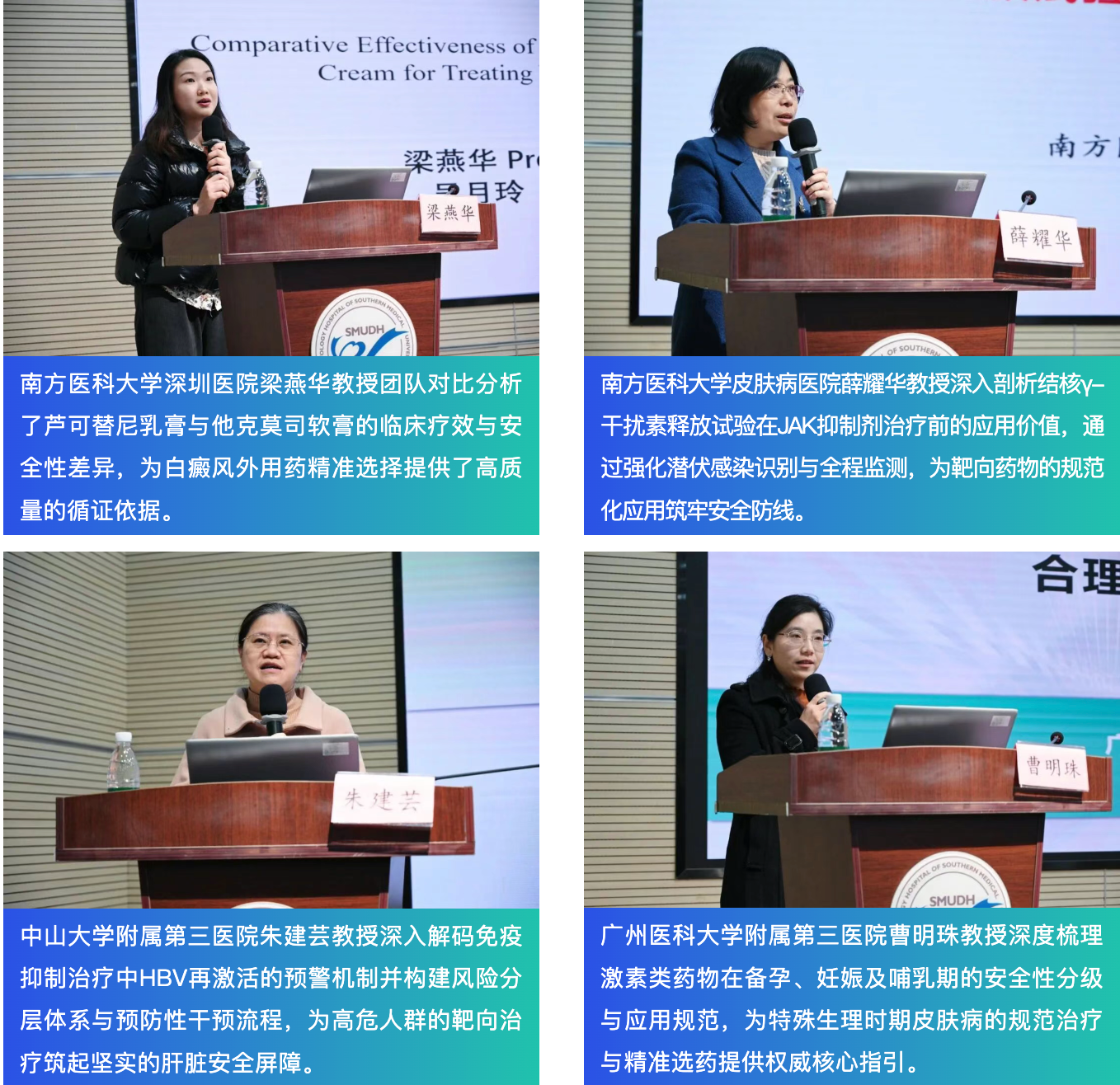 担任本场环节的主持人有广州市红十字会医院李其林教授、中山大学附属第三医院赖维教授、广东省中医院陈信生教授、南方医科大学皮肤病医院王晓华教授、广东医科大学附属医院吴玮教授、中山大学附属第五医院马寒教授。