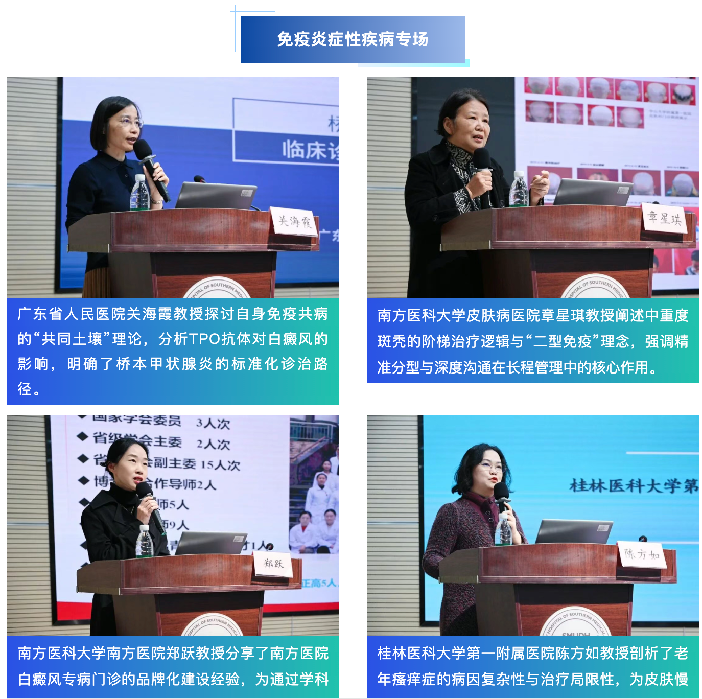在主旨演讲环节,全国皮肤病诊疗领域的多位权威专家齐聚一堂,聚焦白癜风的临床难点、诊疗进展与实践路径,结合各自丰富的临床案例与前沿研究成果,向现场同仁倾囊相授诊疗经验。