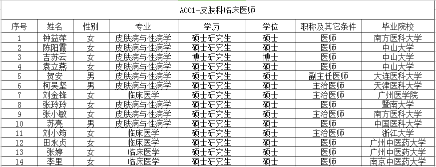 广东省皮肤性病防治中心(广东省皮肤病医院)公开招聘报名初审通过人员名单