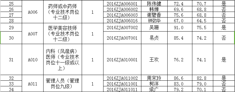 附件:广东省皮肤性病防治中心(广东省皮肤病医院)2016年公开招聘工作人员面试成绩及进入体检环节人员名单