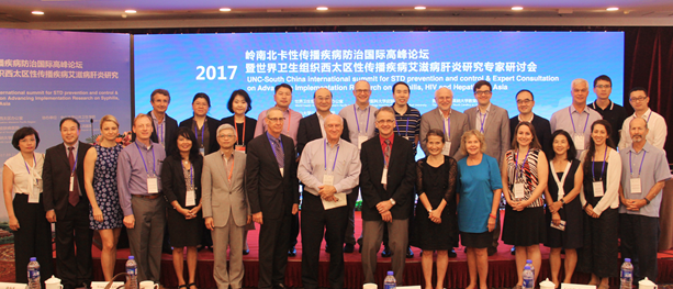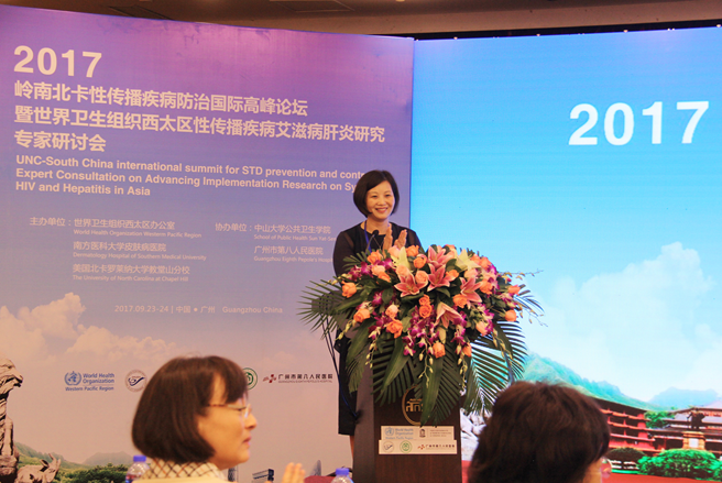 2017年9月23-24日,由南方医科大学皮肤病医院与中山大学公共卫生学院、广州市第八人民医院共同承办的“第六届岭南-北卡性传播疾病防治国际高峰论坛”暨“世界卫生组织西太区性传播疾病、艾滋病及肝炎研究专家研讨会”在广东迎宾馆落下帷幕。来自全球9个国家和地区的100多名顶级专家学者齐聚一堂,就性病、艾滋病和肝炎领域的议题开展学术交流,分享经验、探讨问题、共谋未来的发展与协作。大会开幕式由南医大皮肤病医院杨斌院长主持,广东省卫生计生委彭炜巡视员,南方医科大学高天明副校长,北卡罗来纳大学全球医学学院副院长MyronCohen,WHO亚太区协调员Ying-RuLo分别致辞。另外,还有来自省内外的122名性病、艾滋病及肝炎防控领域的工作者参加了本次会议。