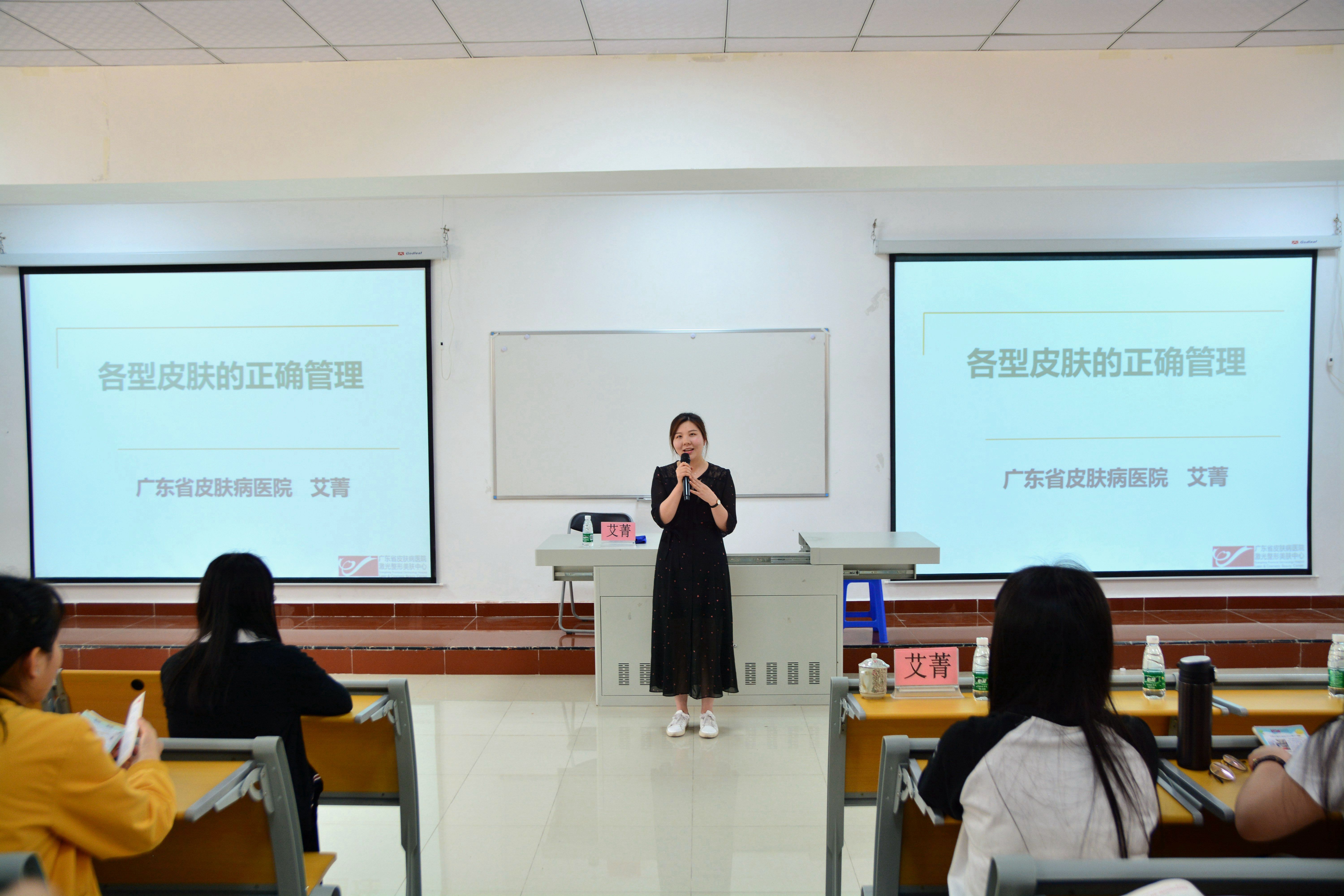 为有效提升大学生的科学护肤意识,增强皮肤病防护知识,3月29日下午,我院志愿者服务队成员一行奔赴位于广州市花都区狮岭镇的广州工商学院开展关于《护肤保护我在行》的培训讲座,本次讲座由我院青年志愿者、医学美容科艾菁医师担任主讲人,共约250余名学生聆听了讲座。