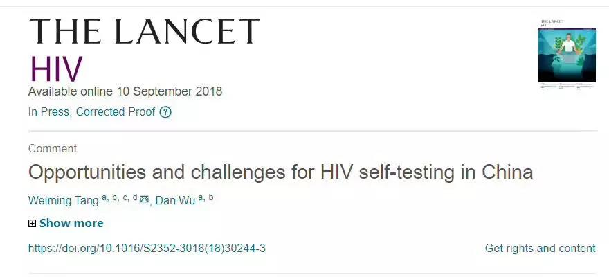 该文章表明HIV自检试剂在中国男男性行为人群中有大量需求,同时我国政府也在积极推广HIV自检试剂在该人群中的使用,但实践中仍面临自检试剂质量不达标、政策法规不完善、相关自检推广方案无法持久等挑战。该研究指出HIV自检为扩大HIV检测范围提供了机遇,并能帮助识别未被发现的HIV病毒感染者,以便为其提供所需的医疗服务。