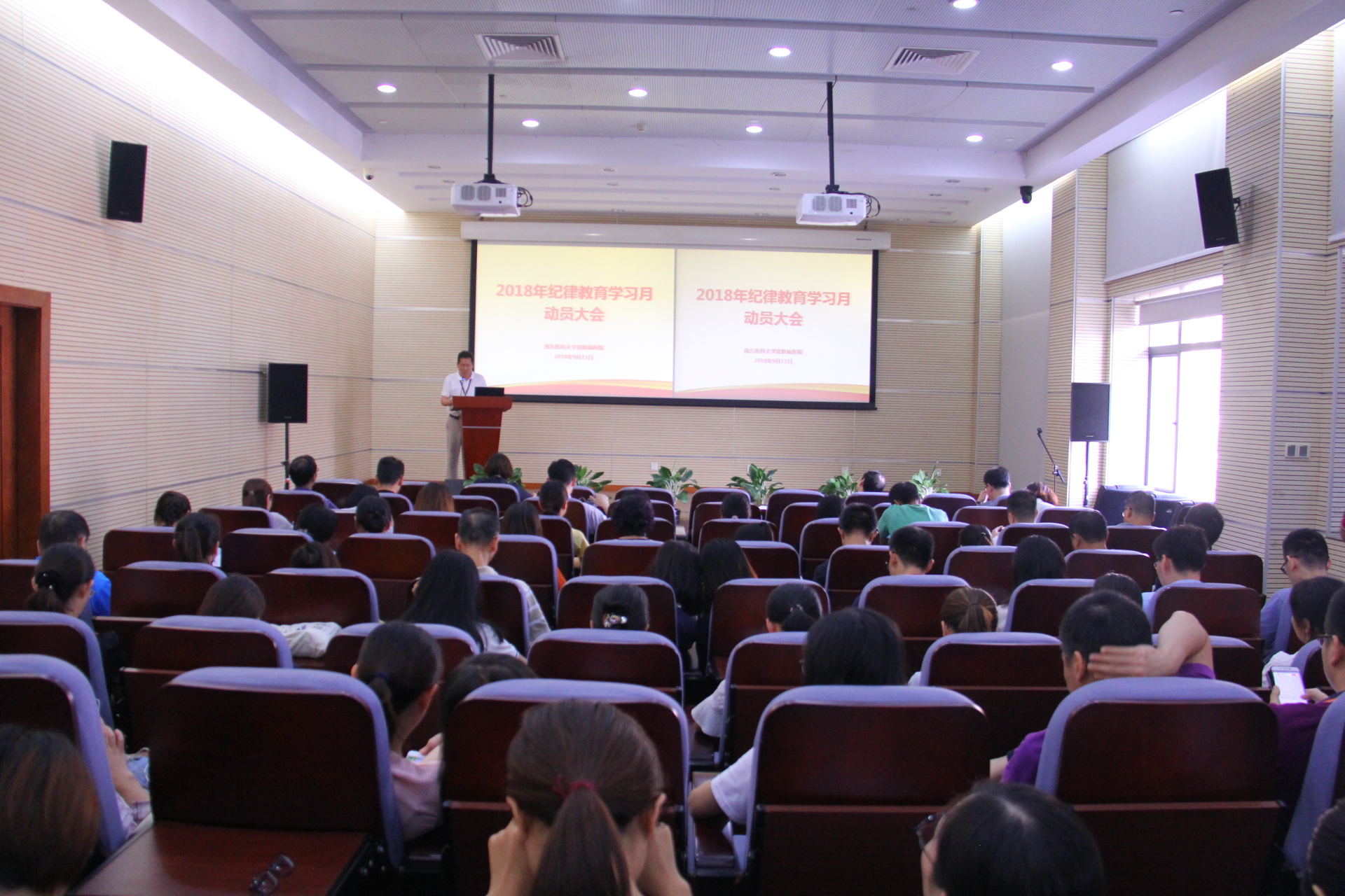 为全面贯彻落实上级有关部门、学校党委关于开展纪律教育学习月活动的要求,9月12日下午,我院在13楼学术报告厅召开了纪律教育学习月动员大会,对今年开展纪律教育学习月活动进行动员和部署。院党委领导班子、中层干部及全体职工共计300余人参加了会议。