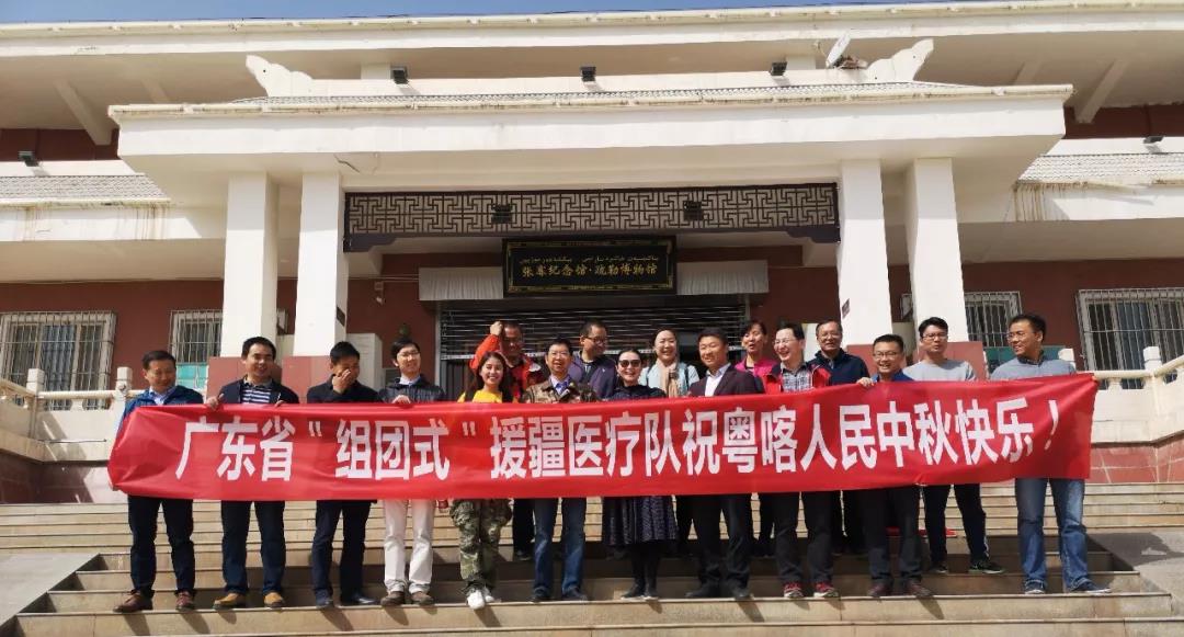 22日,广东援疆医疗团队的成员聚集在张骞纪念馆门口合影留念祝福喀什人民中秋快乐,何仁亮却没有赶得及参加,他正在忙着为患者做一个大手术。