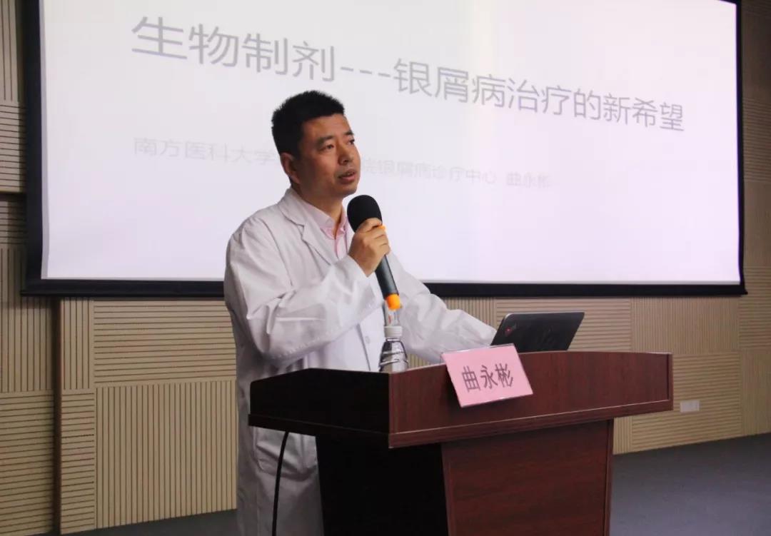 银屑病中心主任曲永彬副主任医师以《生物制剂---银屑病治疗的新希望》为主题,就生物制剂的使用人群、使用情况、使用方法及使用前准备事项进行了讲解,使银屑病患者对生物制剂有了深入的了解。