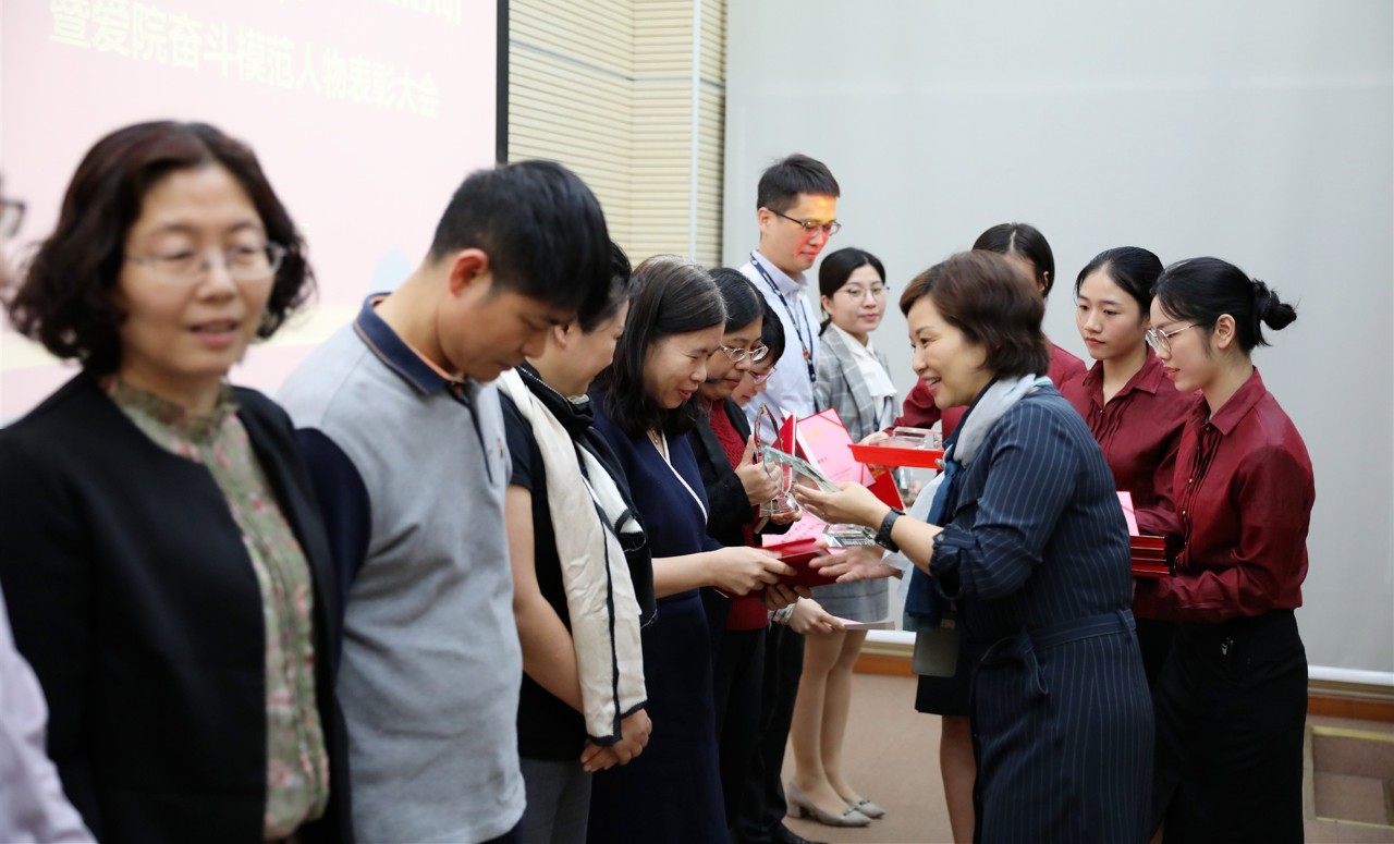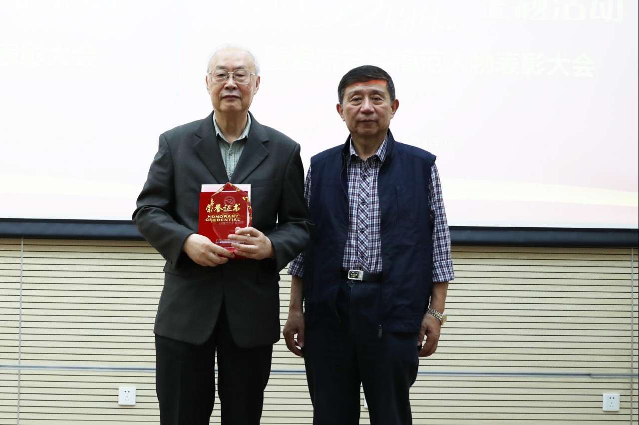 党委书记、院长杨斌为“爱院奋斗模范”罗光浦、谷梅、何仁亮、王辉、梁春梅、薛耀华、吕萍、王成、洪璇等同志颁奖。