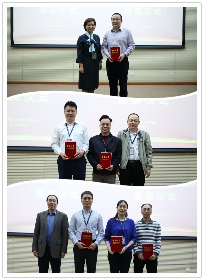 医院领导班子分别为中医皮肤科、党政办、信息科等共11个获得建议征集活动金、银、铜及优秀奖颁奖。