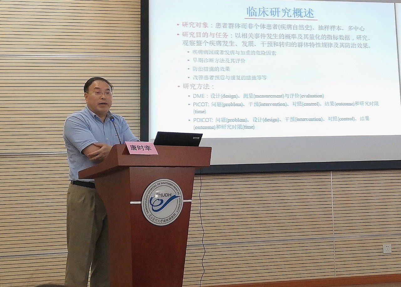 唐时幸教授深入浅出地为学员介绍了临床研究的概念、重要性、选题角度及方案设计等,让学员对临床研究有了整体的认识,极大的提高了学员对临床研究的重视程度。