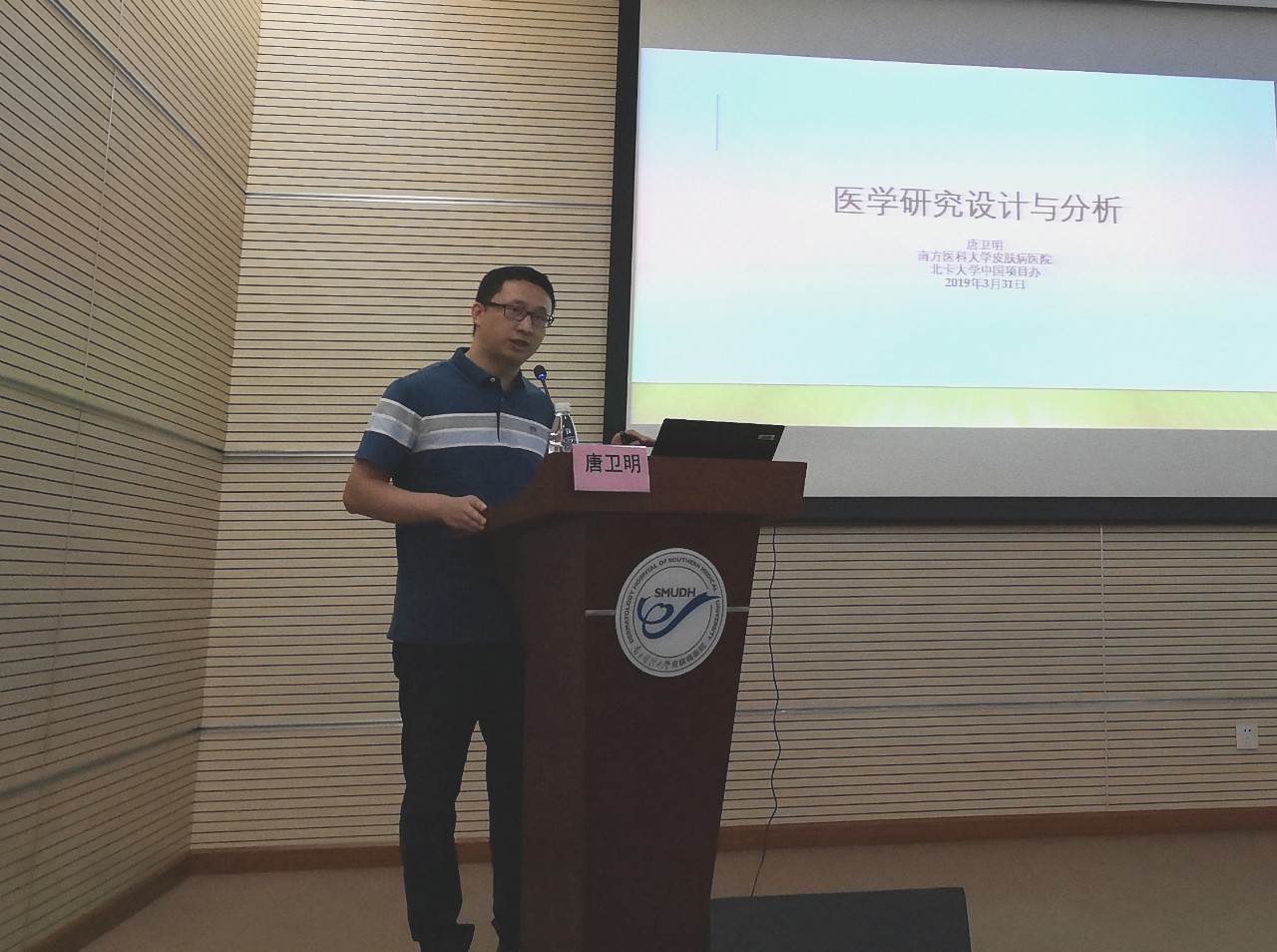 为进一步提升我院临床科研水平, 2019年3月31日上午,我院“临床科研设计、测量与评价”培训班在医院13楼学术报告厅成功举办。本次培训班特邀南方医科大学公共卫生学院统计学系周基元教授、流行病学系毛琛教授,我院双聘教授唐时幸、性防科副主任唐卫明博士进行授课。
