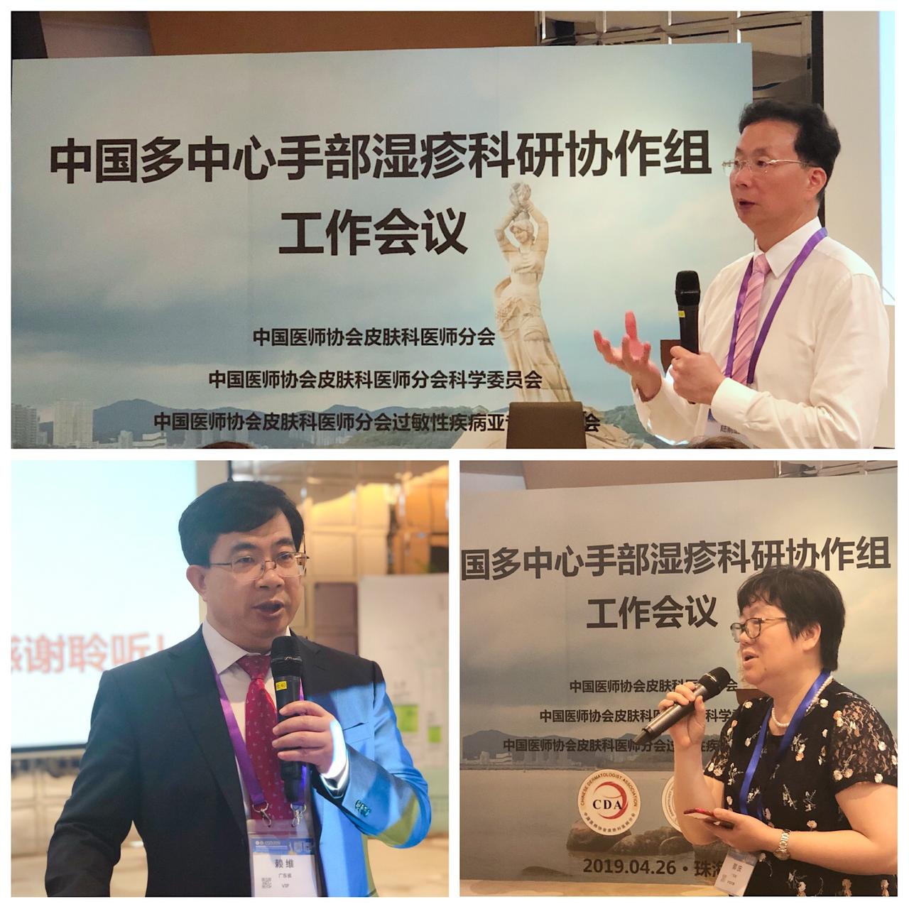 值中华医学会第二十五次全国皮肤性病学术年会之际,中国多中心手部湿疹科研协作组在广东珠海国际会展中心召开了阶段性手部湿疹工作会议。本次会议由协作组首席专家重庆医科大学附属第三医院郝飞教授和我院杨斌教授共同主持,特别邀请中华医学会皮肤性病学分会第十五届主任委员陆前进教授到场点评。协作组主要负责人和秘书组成员以及相关领域知名专家参加了会议。