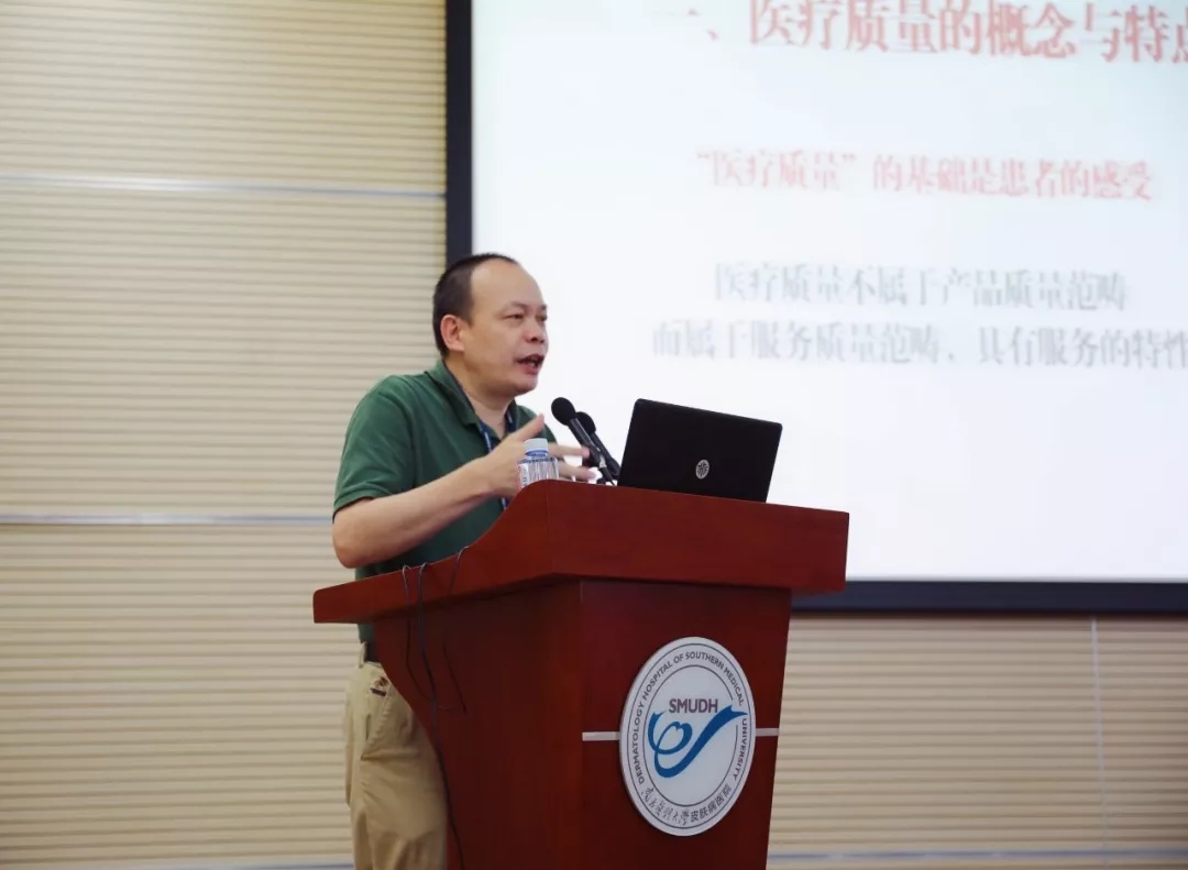 陈永锋副院长细述“医疗质量管理与持续改进”,强调了医疗质量是医院工作的“生命线”,医疗质量管理是医院管理极其重要的组成部分,是医院建设的永恒主题!他要求每一位职工将医疗服务质量放在首位。