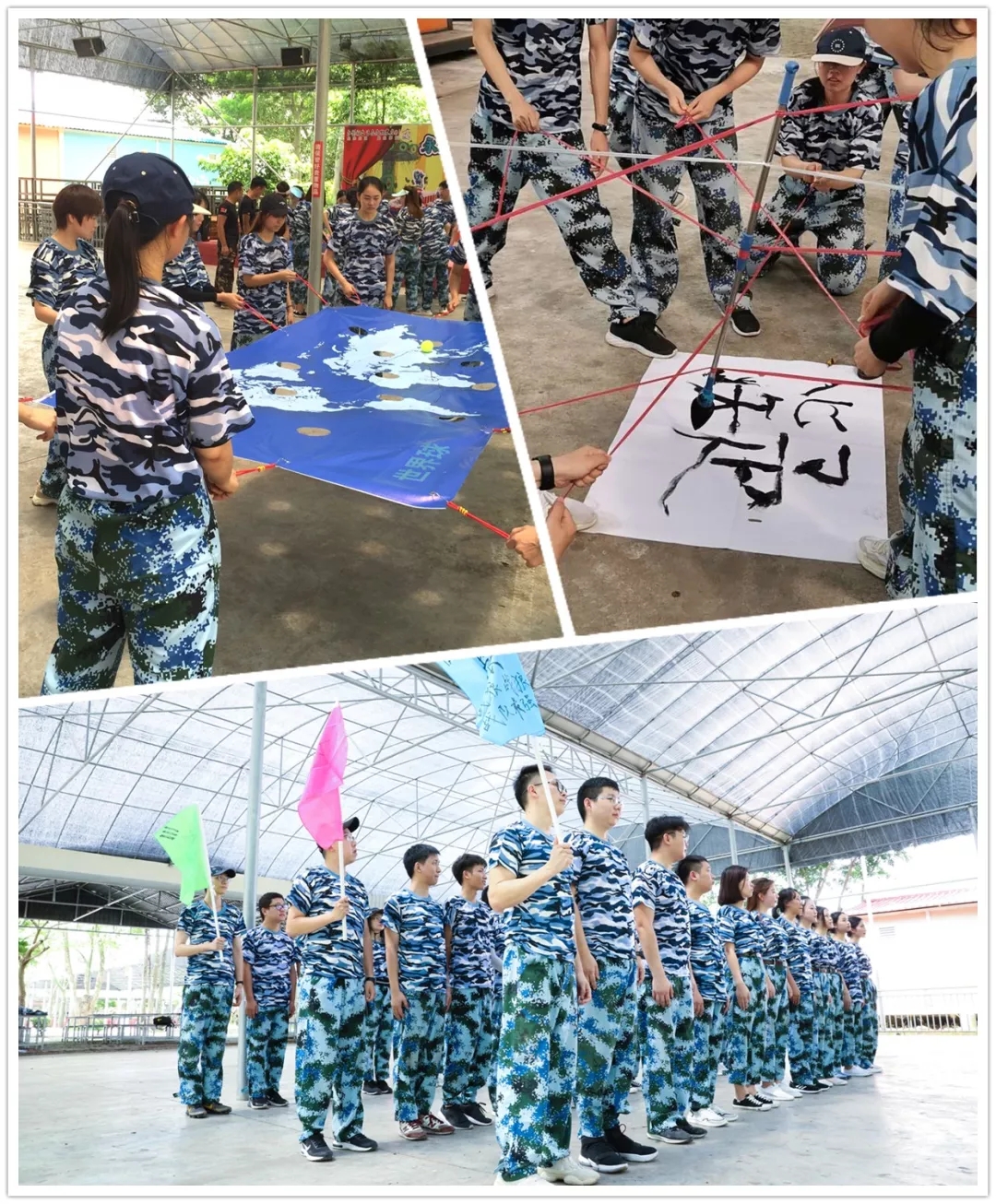 理论培训后是为期两天的户外素质拓展。大家一起完成具有挑战性的团队任务:世界球、不倒森林、妙笔生花等,新员工的关系就像野炊环节的火苗将人与人之间的“坚冰”融化,从此不再陌生,成为“南皮”大家庭的一员。