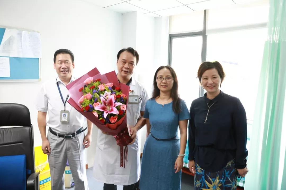 谢岩梅一行在皮肤病医院党委书记、院长杨斌,院党委副书记、工会主席郑道城等的陪同下,来到临床一线,向梁云生、罗光浦、何仁亮等优秀医师代表送上鲜花和慰问金,并与他们亲切交谈,了解他们的工作生活状况,以期帮助解决实际困难。