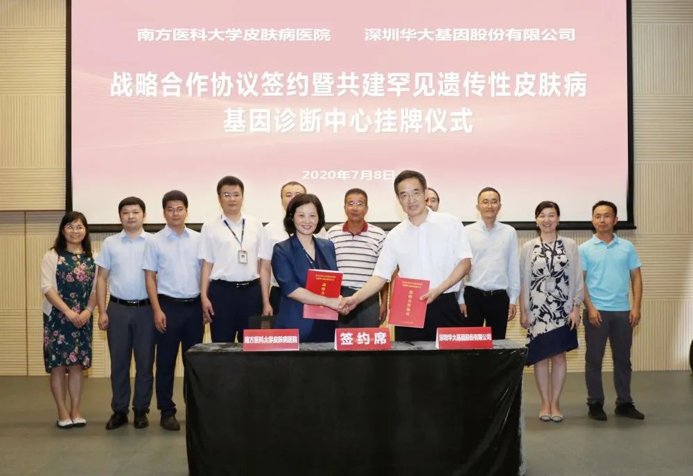 7月8日,南方医科大学皮肤病医院与深圳华大基因股份有限公司战略合作协议签约暨共建罕见与遗传性皮肤病基因诊断中心挂牌仪式在我院11楼多功能厅举行。