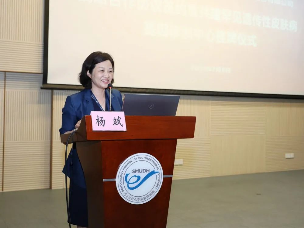 杨斌在致辞中介绍,近年来,我院接诊的罕见皮肤病患者逐年增多,患者承受着巨大的身心痛苦和沉重的经济负担。为此,我院加大对罕见与遗传性皮肤病的研究力度,现已完成原发性轻链型定粉样变等十余个罕见病的临床验证。为了在临床和科研领域取得更大突破,更好满足人民群众的诊疗需求,我院与华大基因进行“深度合作”,借助华大基因科技的全球优势,充分发挥我院在皮肤病医教研防综合优势,强强联手,共建共赢共享,共同推动罕见与遗传性皮肤病精准诊断、精准治疗不断进步,为群众提供优质高效的医疗卫生服务。