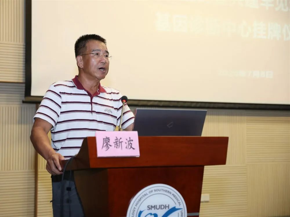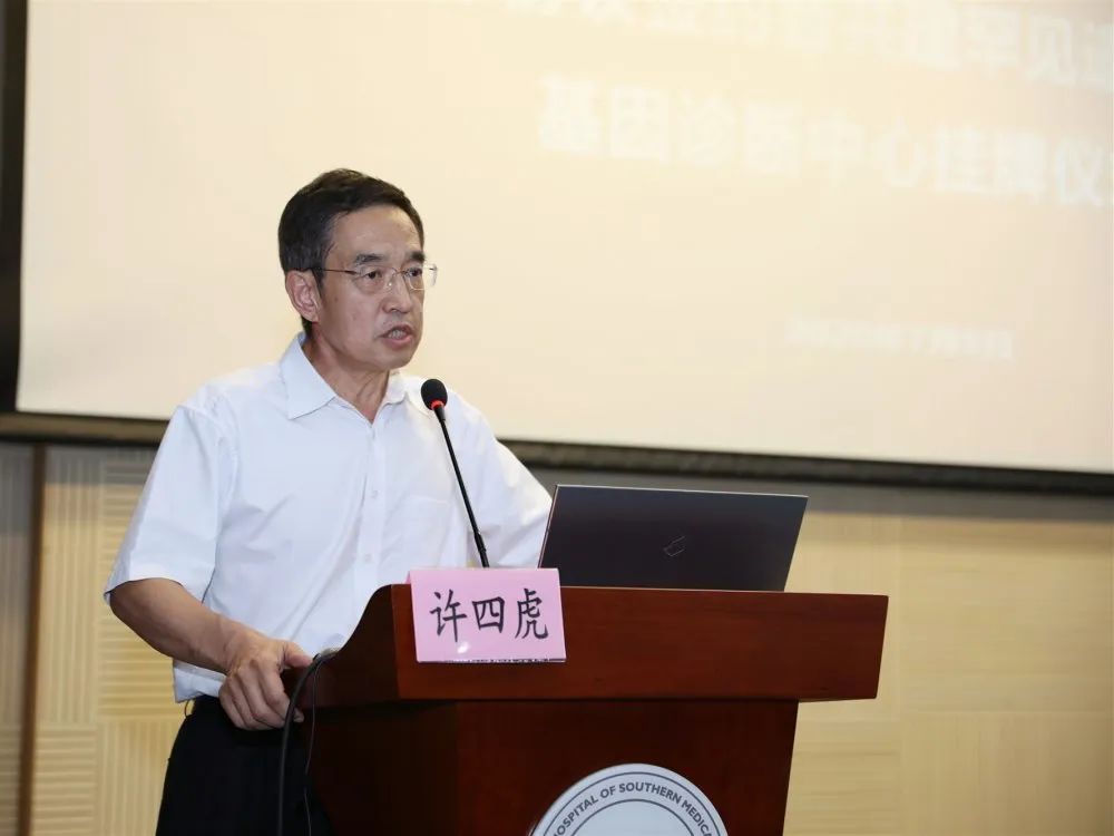 仪式由南方医科大学皮肤病医院副院长郑和平教授主持。原深圳市卫生计生委副主任、华大基因高级副总裁许四虎,原广东省卫生和计划生育委员会副主任、巡视员、华大基因高级顾问廖新波,南方医科大学皮肤病医院党委书记、院长杨斌出席仪式并发表致辞。我院主要行政职能科室、实验研究中心、罕见与遗传性皮肤病基因诊断中心等负责人和博士后、研究生代表等60余人参加仪式。