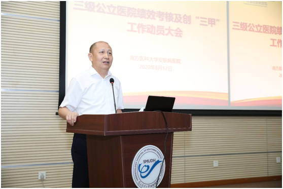熊梦辉副校长在动员讲话中肯定了医院近年来良好的发展势头,强调了国家绩效考核的重要性与权威性。他指出,绩效分数与排名体现了医院技术水平与管理水平,是创建国家区域皮肤