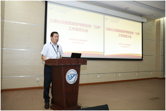 随后,我院在学术报告厅组织召开三级公立医院绩效考核及创“三甲”工作动员大会,熊梦辉副校长出席会议,我院领导班子,行政职能、临床医技、业务科室负责人及全体职工共300余人参加了会议。