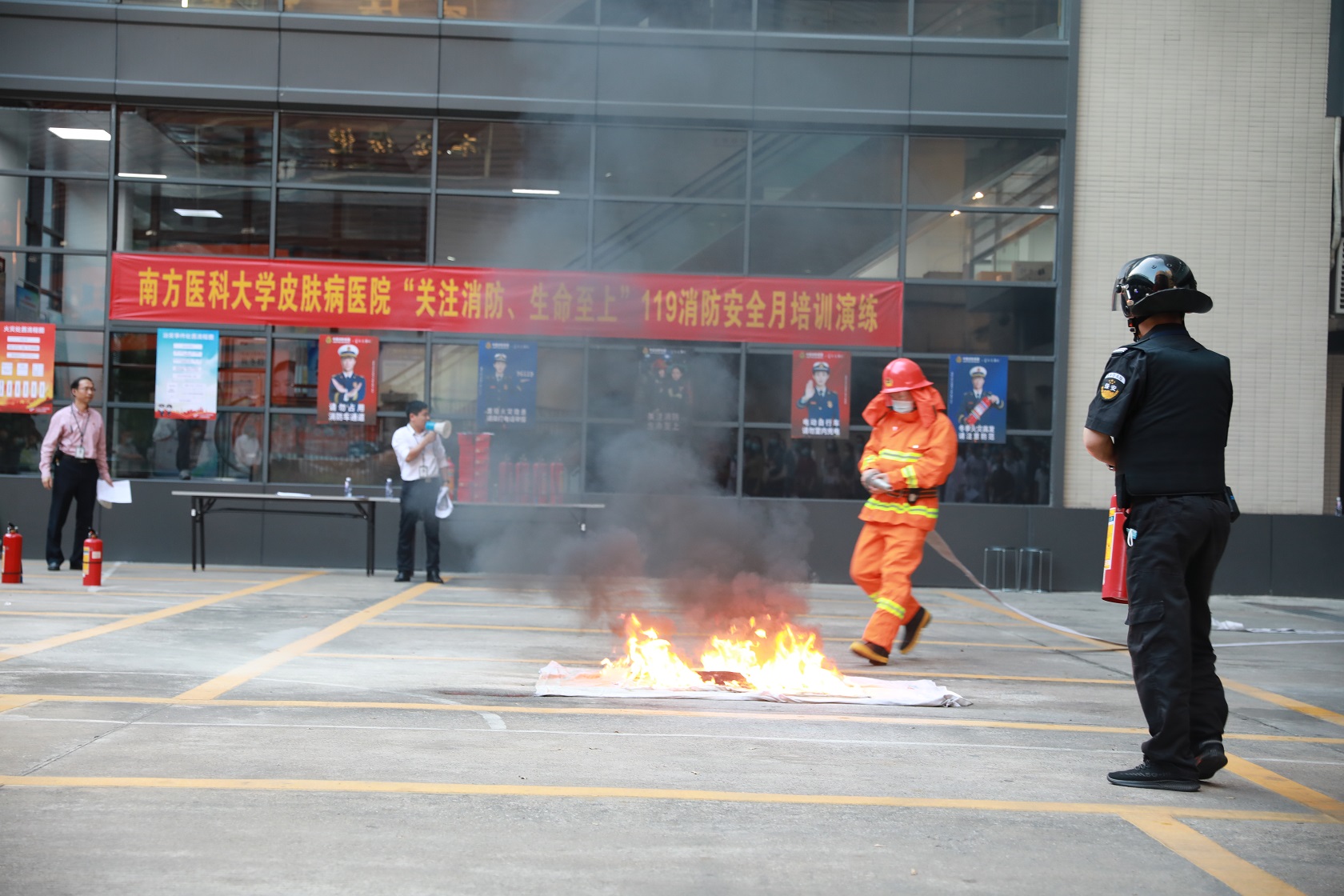 为进一步加强我院消防安全和治安保卫工作,提高全体职工的消防、防暴能力,11月25日,南方医科大学皮肤病医院联合越秀消防大队、登峰街道办、登峰派出所开展了消防、防暴演练培训。医院党委书记陈旭坚,党委副书记、副院长郑道城,登峰街道办武装部部长夏杨,登峰派出所警官谢运生,越秀消防大队恒福支队队长张俊才出席活动,全院各科室人员约200人参加。