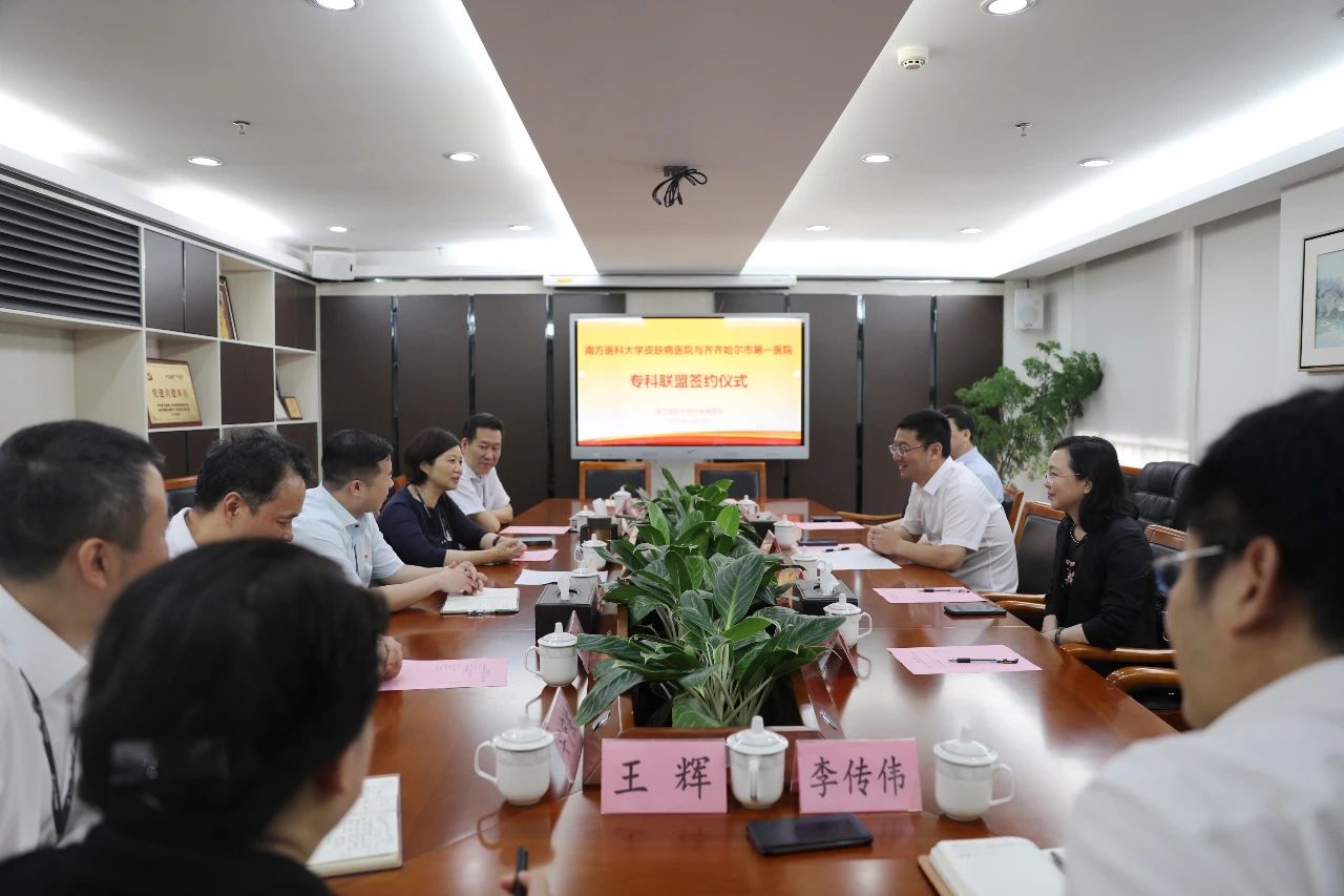 4月14日,南方医科大学皮肤病医院与齐齐哈尔市第一医院正式签订专科联盟协议,南方医科大学皮肤医院院长杨斌、党委书记陈旭坚,齐齐哈尔市第一医院执行院长黎原出席了签约仪式,仪式由南方医科大学皮肤病医院副院长郑道城主持。