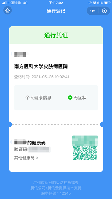 (外地来我院就诊的人员,在上报健康信息中“居住地址”一栏可填写我院地址:广州市越秀区登峰街道下塘社区)