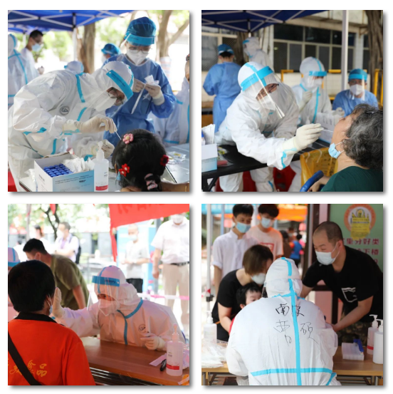 一切准备就绪,中午1点半,我院第一批采样人员奔赴越秀区建设四马路、南洋电器厂、建设大马路乐祺广场等多地开展核酸采样,采样人员在户外顶着高温、穿着全套防护服,在一身大汗中耐心为群众开展采样,轻易不下前线。