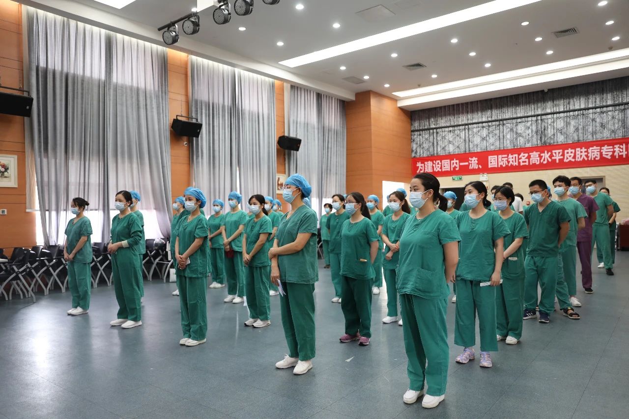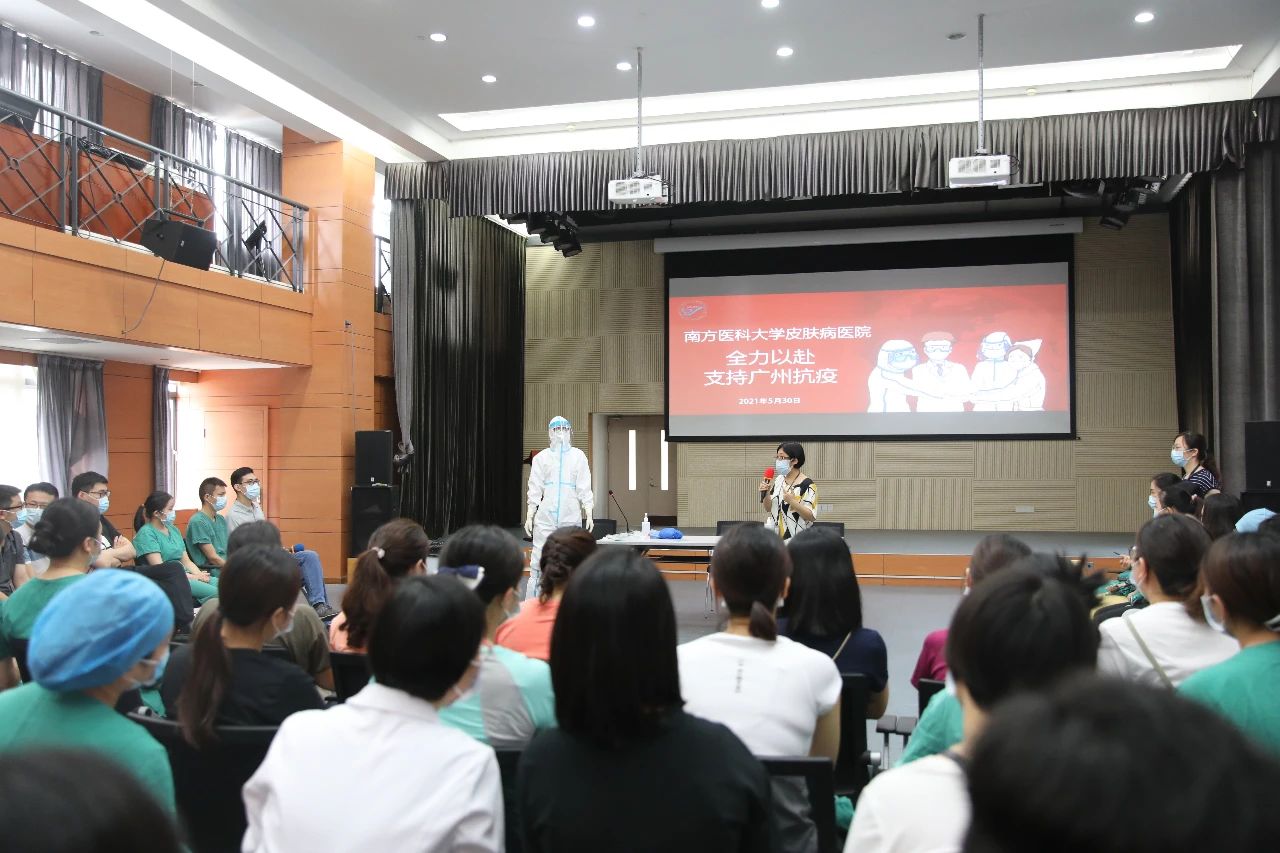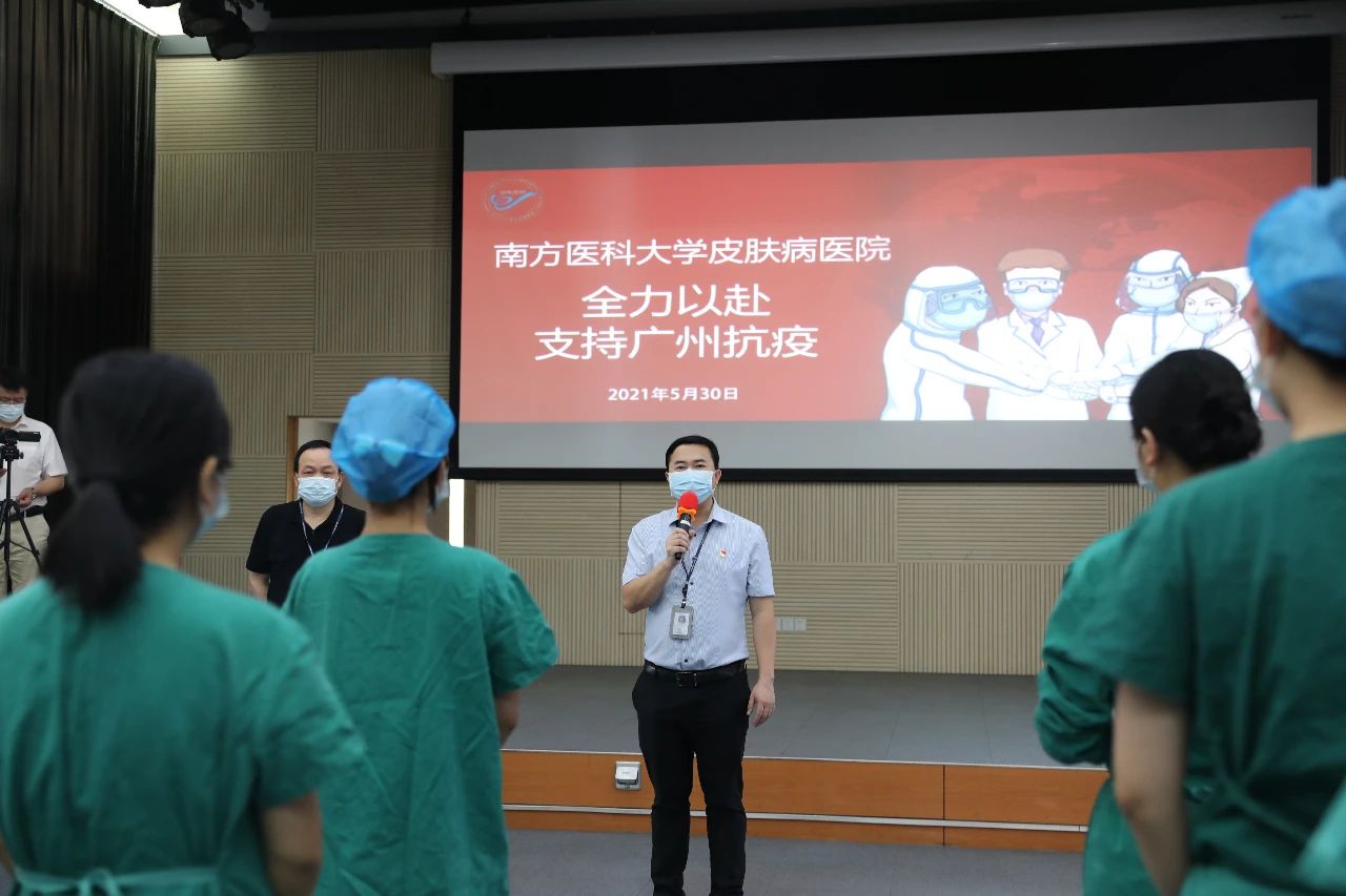 5月30日上午7点半,我院核酸采样医疗队队员在11楼多功能厅集合,院党委书记陈旭坚、副院长陈永锋进行动员部署,陈书记指出,支持广州疫情防控工作,南方医科大学皮肤病医院义不容辞,本次核酸检测任务,从收到通知到集结完毕,医务人员迅速行动,各部门配合密切,体现了我院的责任担当和组织动员能力,医务人员要注意做好防护,保护自己,保障市民,守护广州,凯旋归来。