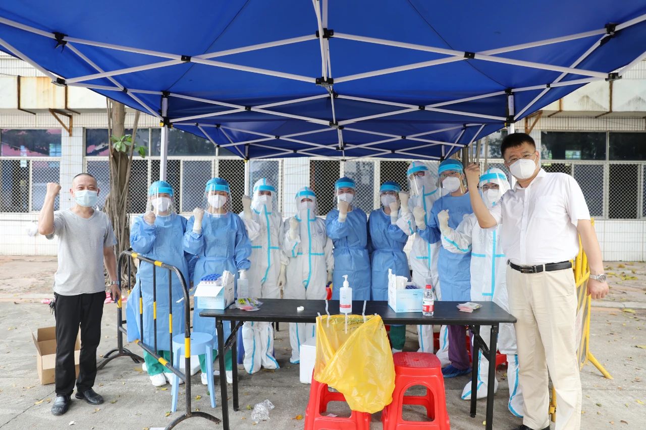 5月29日晚11点,我院接到越秀区防控疫情指挥办《关于商请医护力量支援越秀区全员核酸检测工作的函》,院领导高度重视,立即召开紧急会议,杨斌院长、陈旭坚书记即刻进行部署,全院各部门积极响应、主动请战,连夜组织了一批由医生、护士、公卫、检验人员组成的核酸采样医疗队。