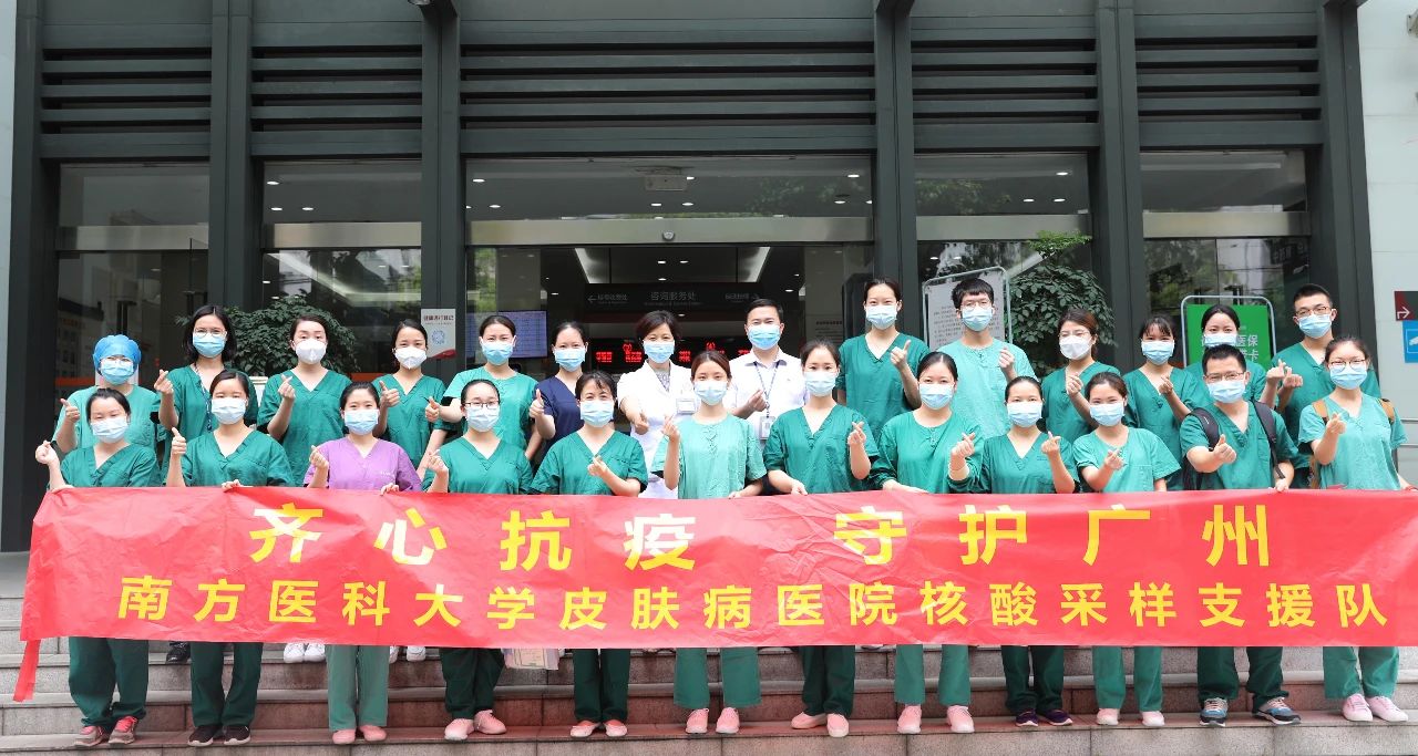 5月30日至今,南方医科大学皮肤病医院积极支援越秀区核酸检测工作,已先后派出医护人员10批152人次参与建设街社区核酸检测工作,共产党员、共青团员冲锋在前,党旗、团旗在一线交相辉映,高高飘扬。