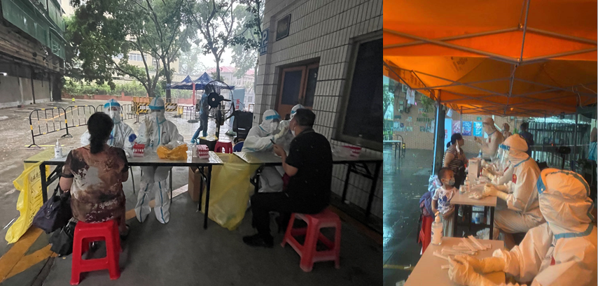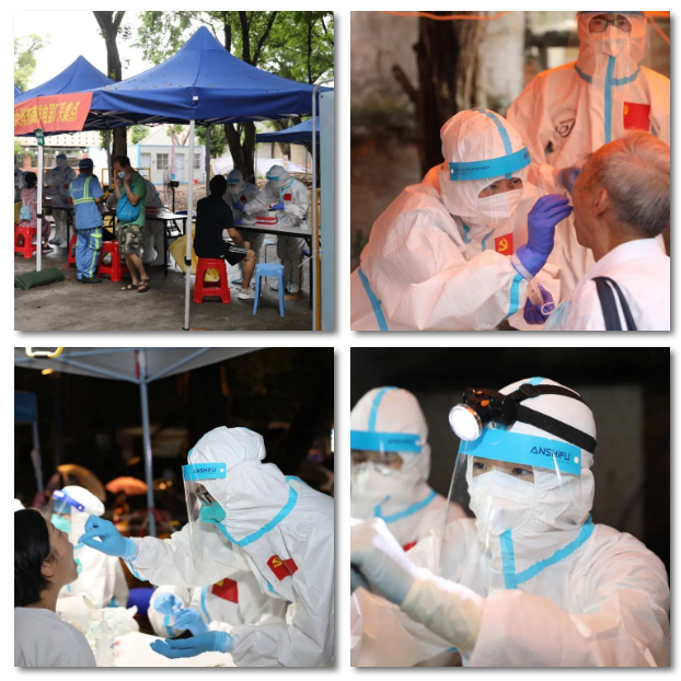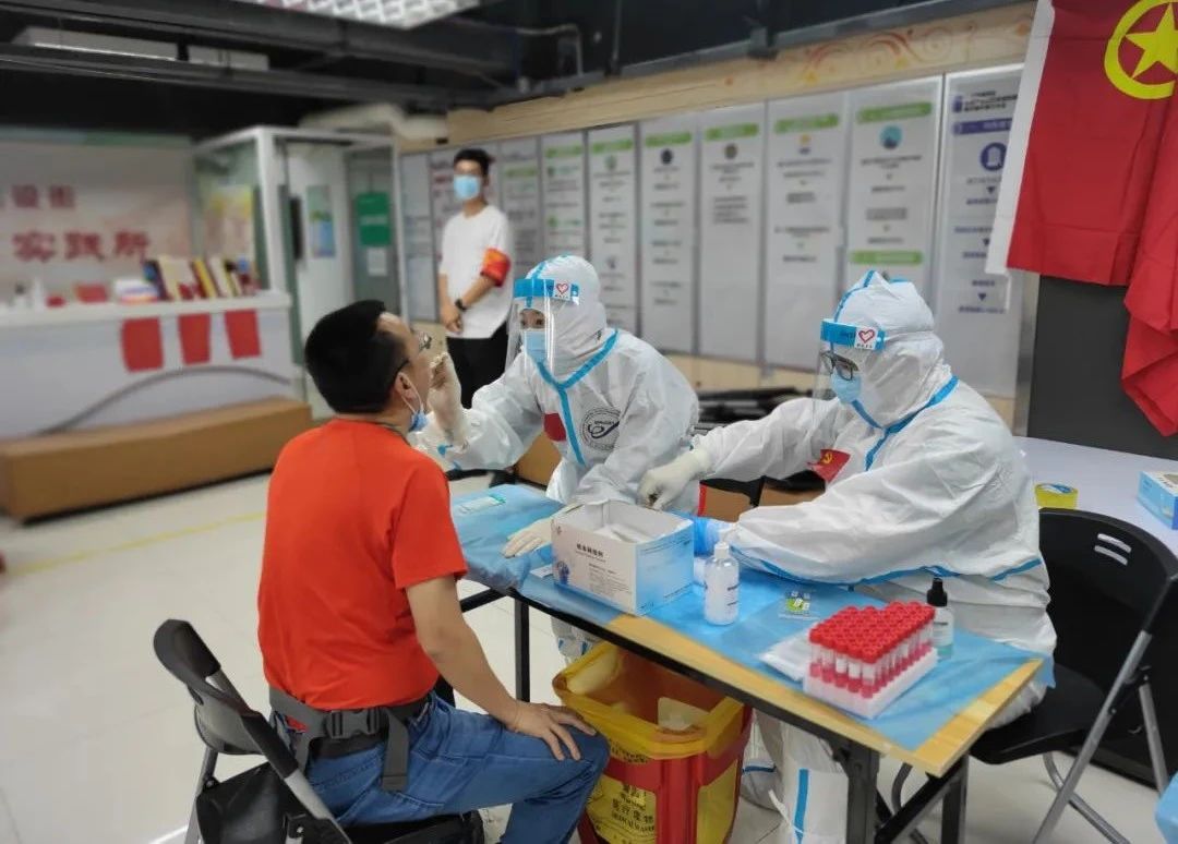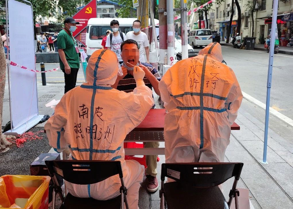 面对这次突发疫情,我院党员、团员充分发挥先锋模范作用,冲锋在前,带头参与一线核酸检测,其中,党员熊明洲、陈磊作为曾经参与支援武汉疫情防控的公卫医师,再次奔赴一线,迅速投入到支援工作中。在他们的示范带领下,小分队在3小时内累计完成超过1000人次的核酸检测工作。