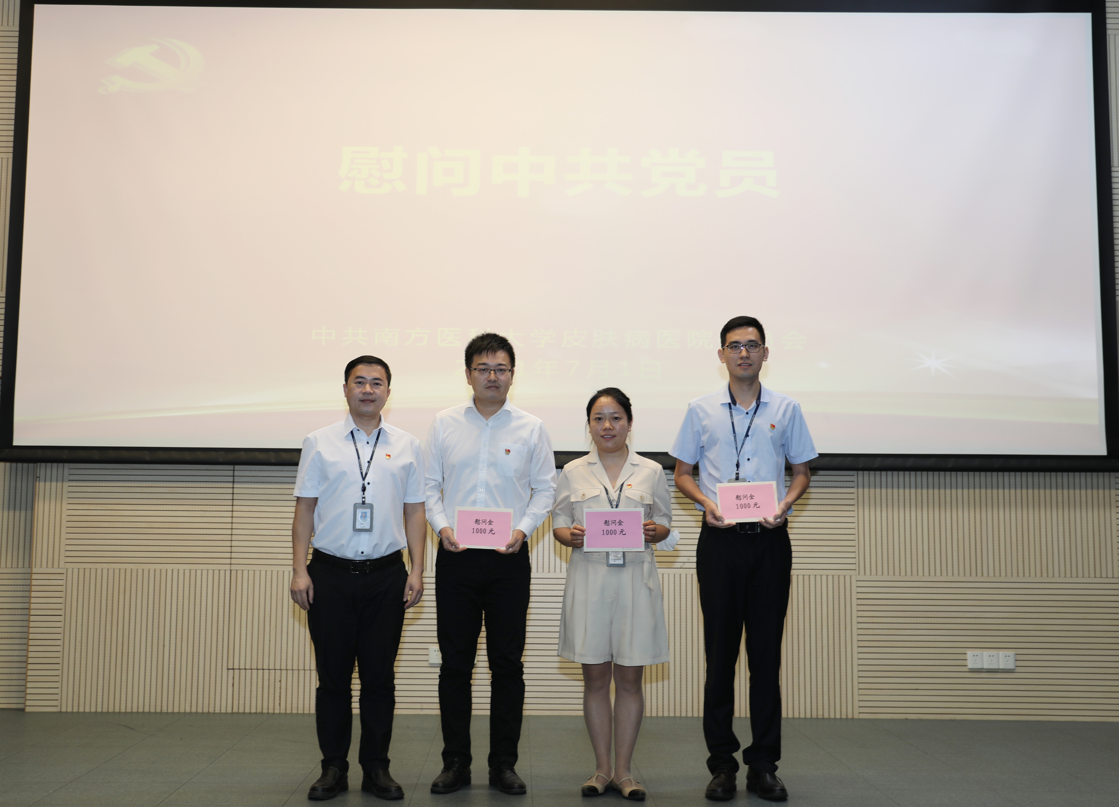 随后,陈旭坚书记对李畅畅、陈磊、王维佳三位同志进行集体慰问,为他们发放慰问金并合影留念。