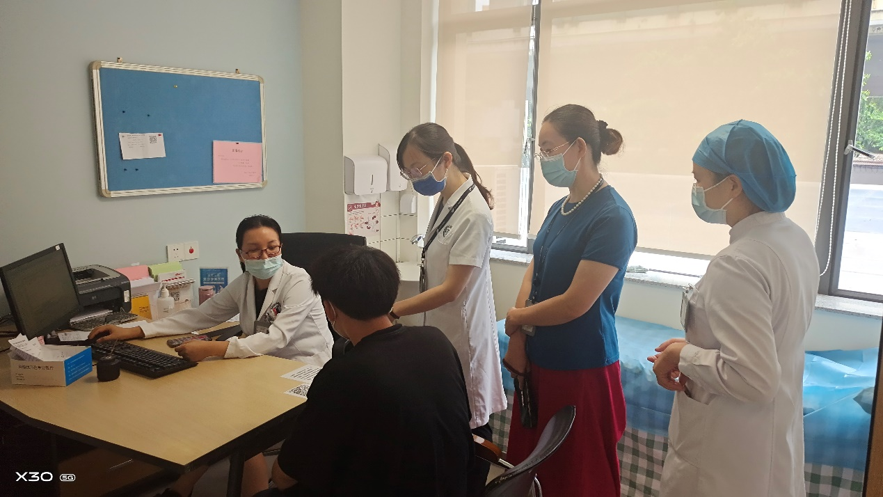 2021年7月2日,由郑和平副院长带队,院感办李慧忠主任组织督导员和有关人员开展了一次全院性感控督导检查。检查组在8楼住院病区现场考核了工作人员对病区发热患者的处置流程、新冠“十大症状”熟悉程度,检查了病区发热患者隔离病房的整改情况,对患者及陪护人员的核酸检测、健康登记、外来人员管理情况进行了抽查。郑和平副院长强调,病区的护理员及卫生员的培训及考核要人人过关。检查组在门诊2楼诊区,抽查医生对就诊患者的流行病学史的了解、复核情况。李慧忠主任要求在预检分诊处要对所有进院人员必须做到“三必查一询问”,同时对督查中的不足提出整改建议。