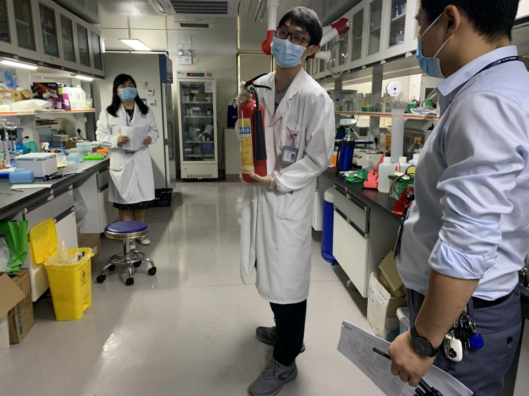 为深入贯彻落实《中华人民共和国安全生产法》和《生产安全事故应急条例》中有关易燃易爆物品、危险化学品的管理规定,规范生产安全事故应急工作,保障危险化学品安全使用,防控安全风险,提高操作人员紧急处理能力,完善我院易制毒、易制爆危险化学品管理应急预案及流程,10月14日下午,由应急办、设备科、总务科联合组织,中心实验室、检验科、制剂中心、病理科和各病区共同参与的过氧化氢爆炸事故应急演练在7楼实验室举行。