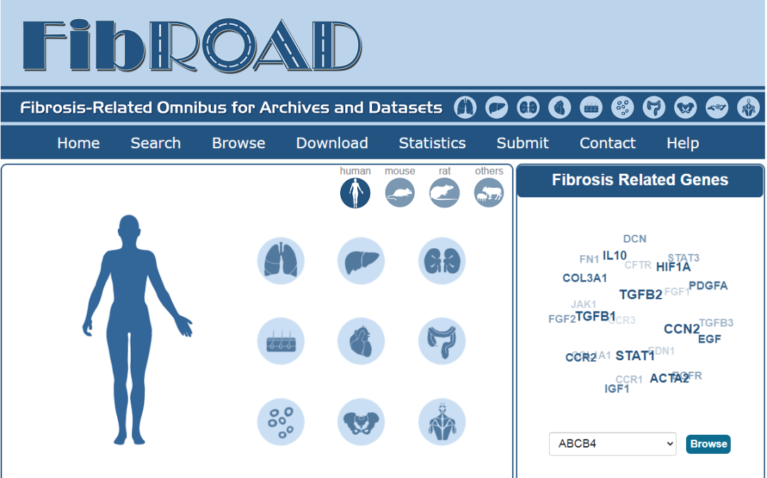 5.建立了以高质量证据为基础的纤维化相关基因集合与全网首个纤维化疾病与动物模型多维组学数据库FibROAD: Fibrosis-Related Omnibus for Archives and Datasets