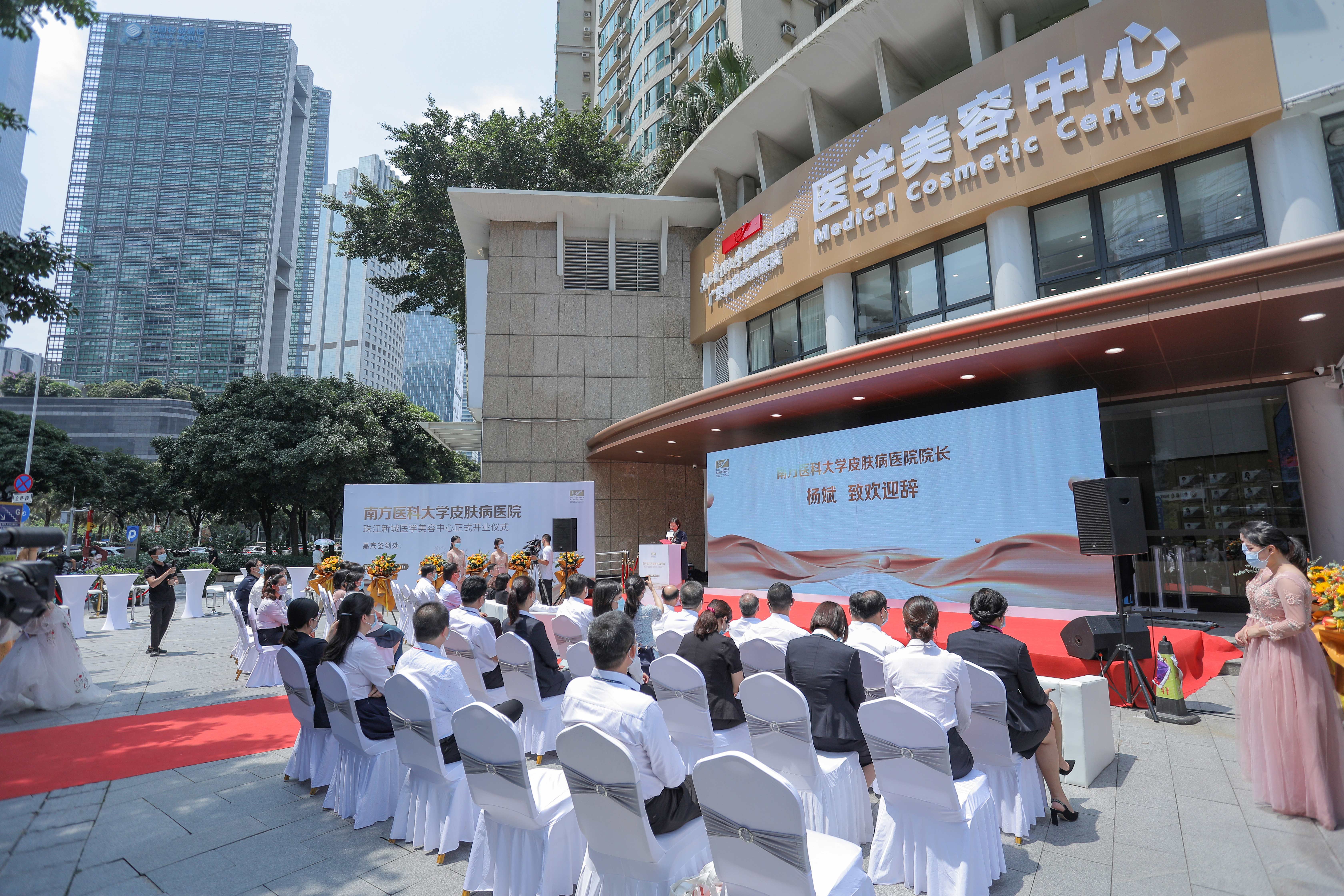 南方医科大学校长黎孟枫、副校长熊梦辉,省卫健委医政医管处处长张发滨、省药品监督局化妆品监管处处长陆霞,天河区卫健局副局长李俊、南方医科大学医管处处长杜庆锋以及医院领导班子、中层干部出席了开业仪式。仪式由南方医科大学皮肤病医院党委书记陈旭坚主持。