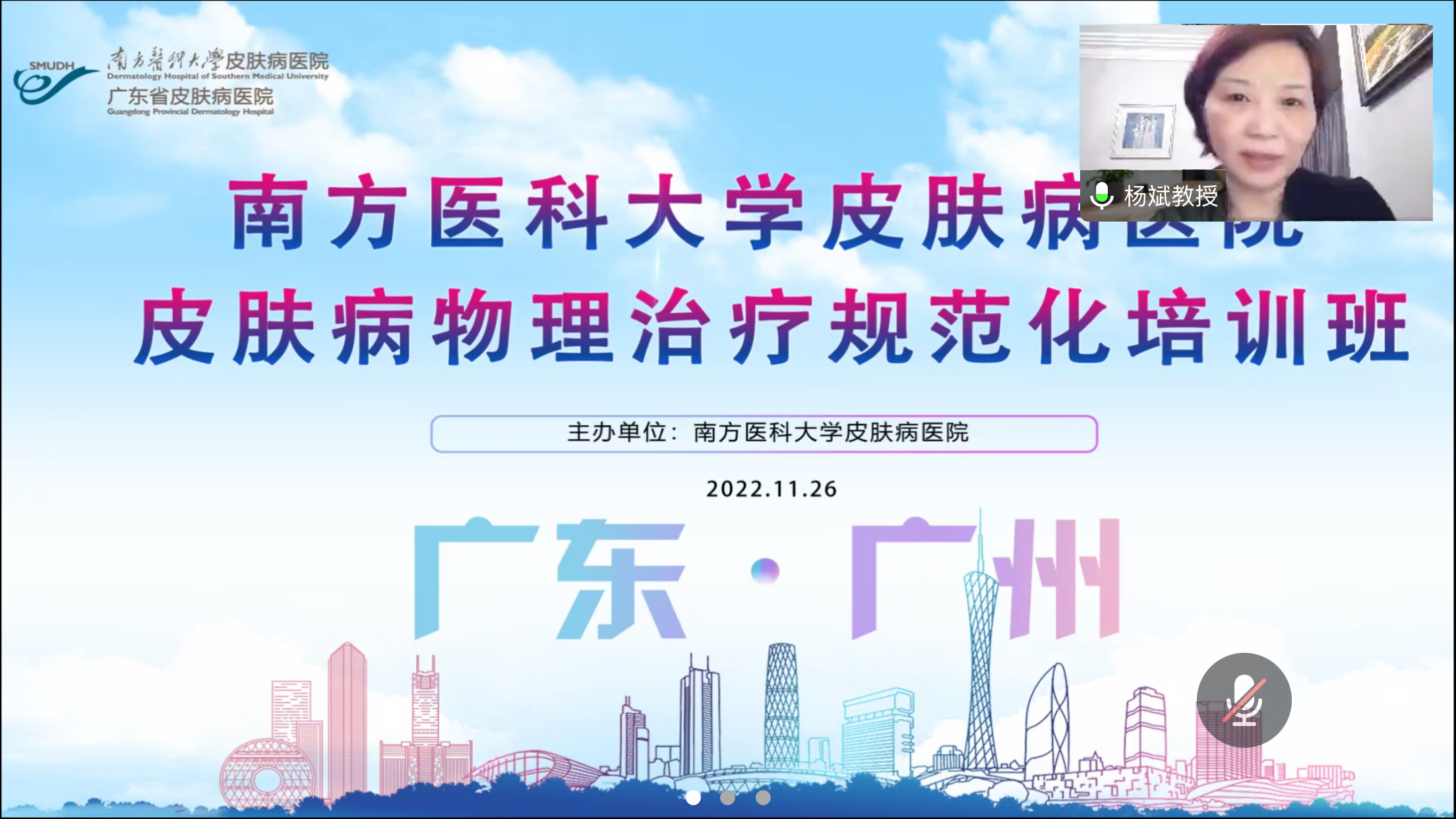 为促进皮肤病物理治疗的规范发展,搭建学术交流的平台,由广东省麻风皮肤病防治协会、南方医科大学皮肤病医院主办的首届皮肤病物理治疗规范化培训班于线上召开,数百名来自省内外的学员参会。