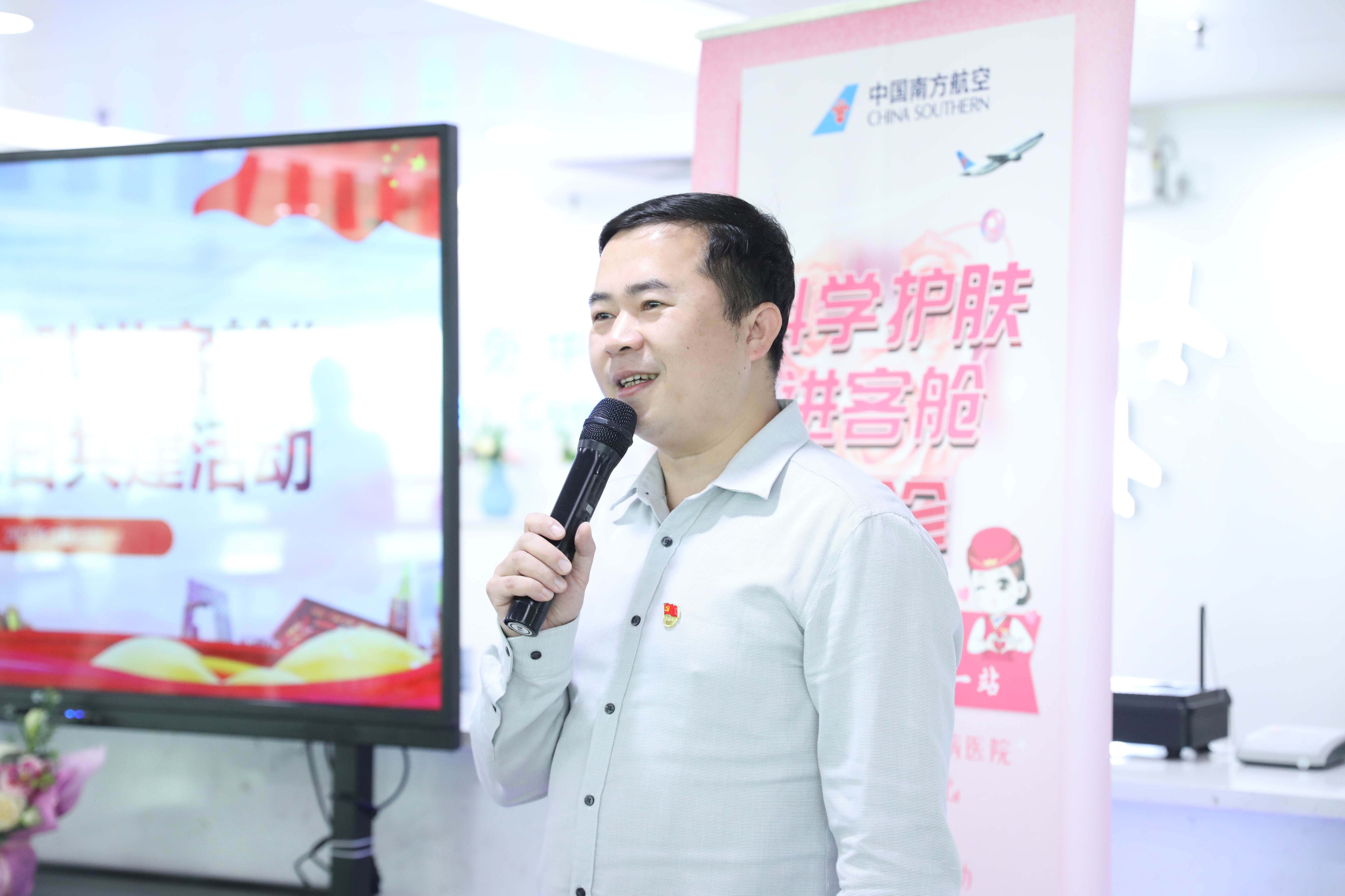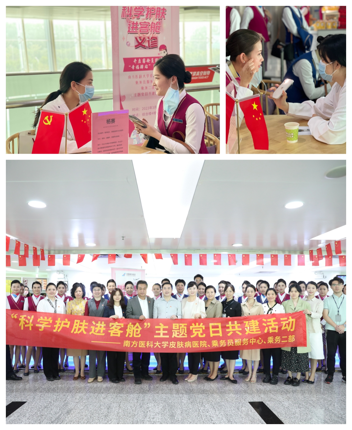 为深入学习宣传贯彻党的二十大精神,关爱南航员工皮肤健康,进一步提高航空服务从业人员的科学护肤意识,切实将践行党的二十大精神与服务百姓大健康紧密结合,南方医科大学皮肤病院联合南方航空乘务员服务中心、乘务二部开展“科学护肤进客舱”活动。党委书记陈旭坚带队参加活动。