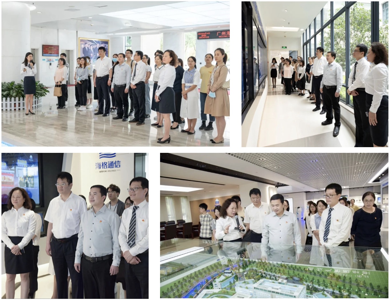 在海格通信党委副书记苏秋霖等人员陪同下,南方医科大学皮肤病医院一行通过参观海格通信的研发大楼展示区、“科技+文化”主题展厅,了解海格通信的企业背景、发展历程、专业领域及企业文化等。