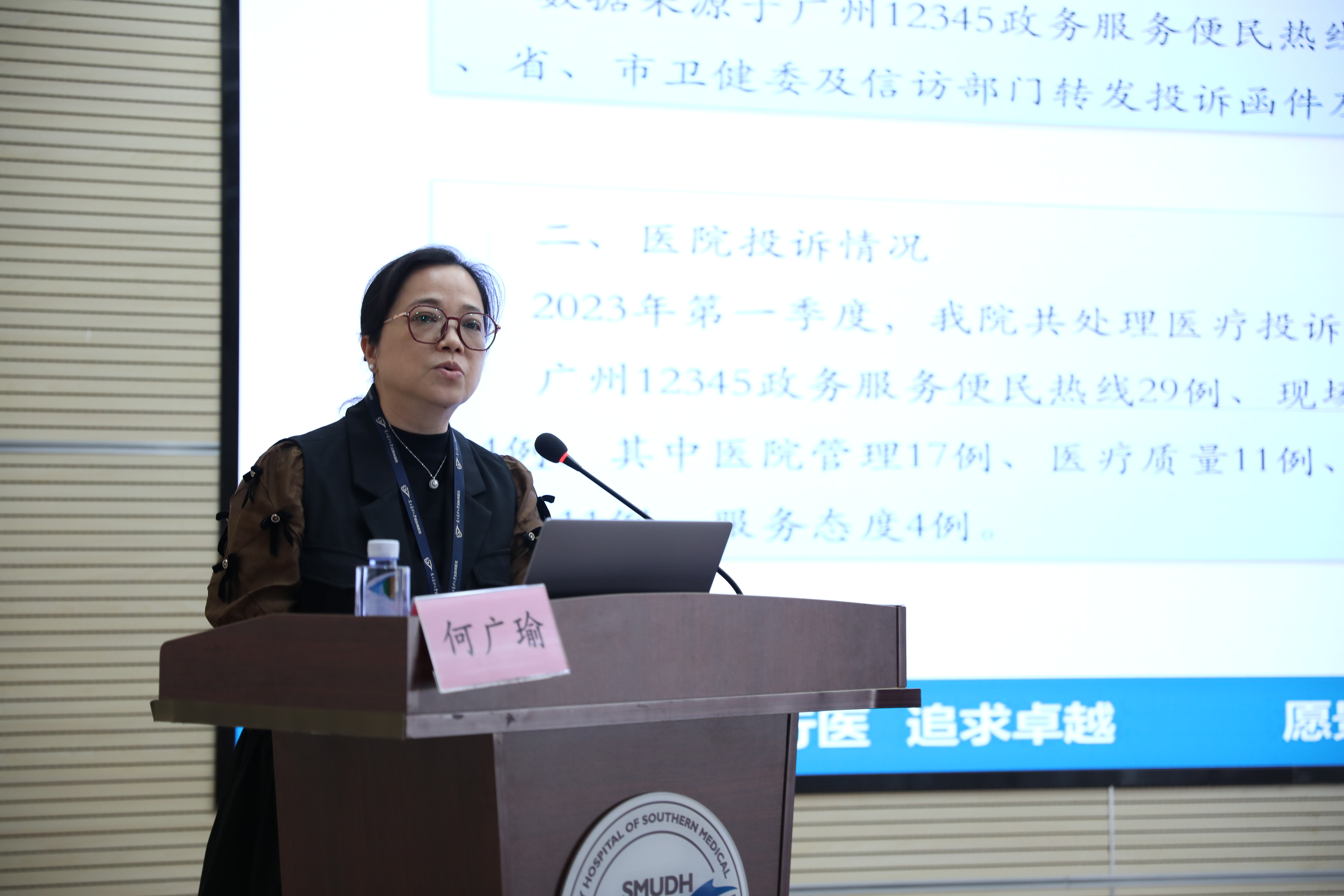 皮肤内科、医务部、质管科、护理部、院感办、药剂科、客服中心、设备科、信息科、财务科等科室主任紧扣医疗管理主题分别做了经验交流和工作汇报。