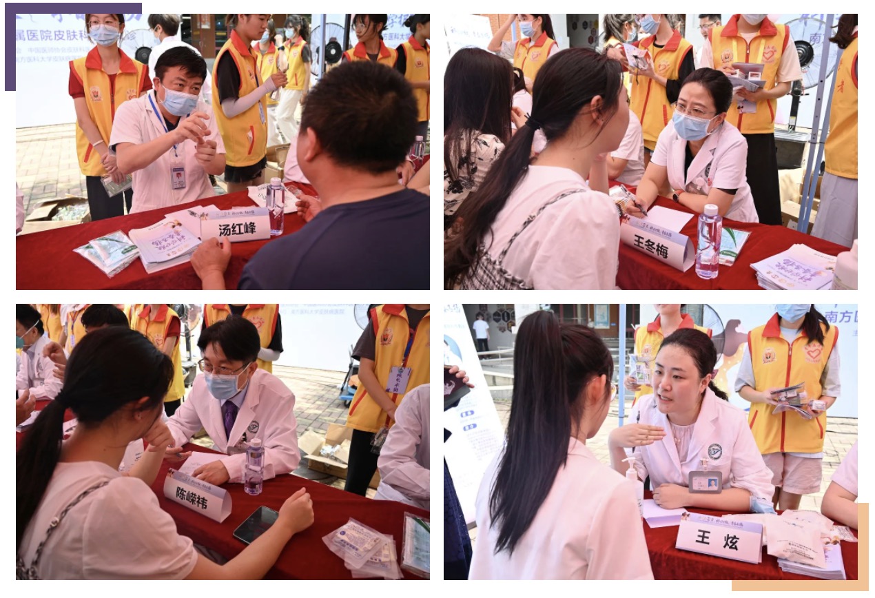 随着社会经济发展,大众对美的追求也不断提高。然而网络上各种护肤信息内容良莠不齐,真假难辨。为提升学生的皮肤健康意识,满足我校青年大学生的科学护肤的实际需求,由来自南方医科大学皮肤病医院、南方医科大学南方医院、南方医科大学珠江医院、南方医科大学第三附属医院及南方医科大学顺德医院的皮肤科专家组成义诊团队在活动现场为青年大学生们提供皮肤病、医学美容等方面咨询、诊治服务,并从合理用药、健康生活方式、疾病预防等角度给予科学指导,共接诊学生、教师600余人。