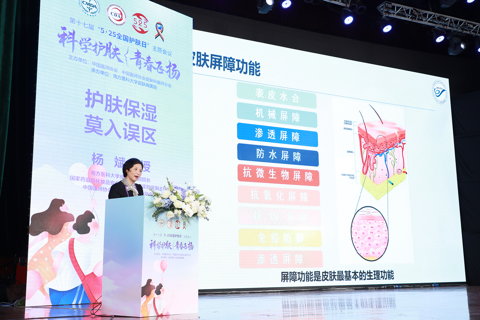 杨斌教授以《护肤保湿,莫入误区》为主题进行专题讲座
