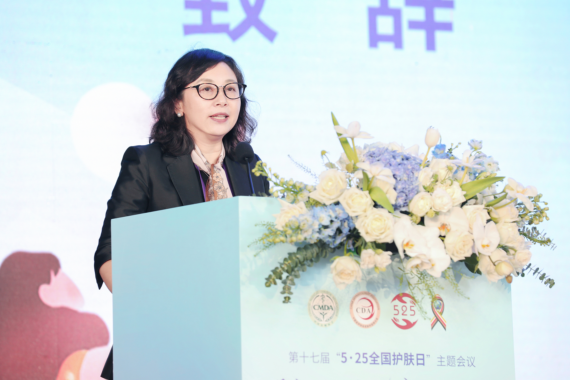 杨斌教授首先对与会来宾表示热烈的欢迎和衷心的感谢。她表示健康的皮肤是从科学护肤开始的,今年举办“科学护肤进校园”,开展校园义诊、科普讲座、专家学生互动等活动,通过面对面的交流,指导大学生们如何应对皮肤疾病,如何科学、专业地保持皮肤健康。未来“5.25