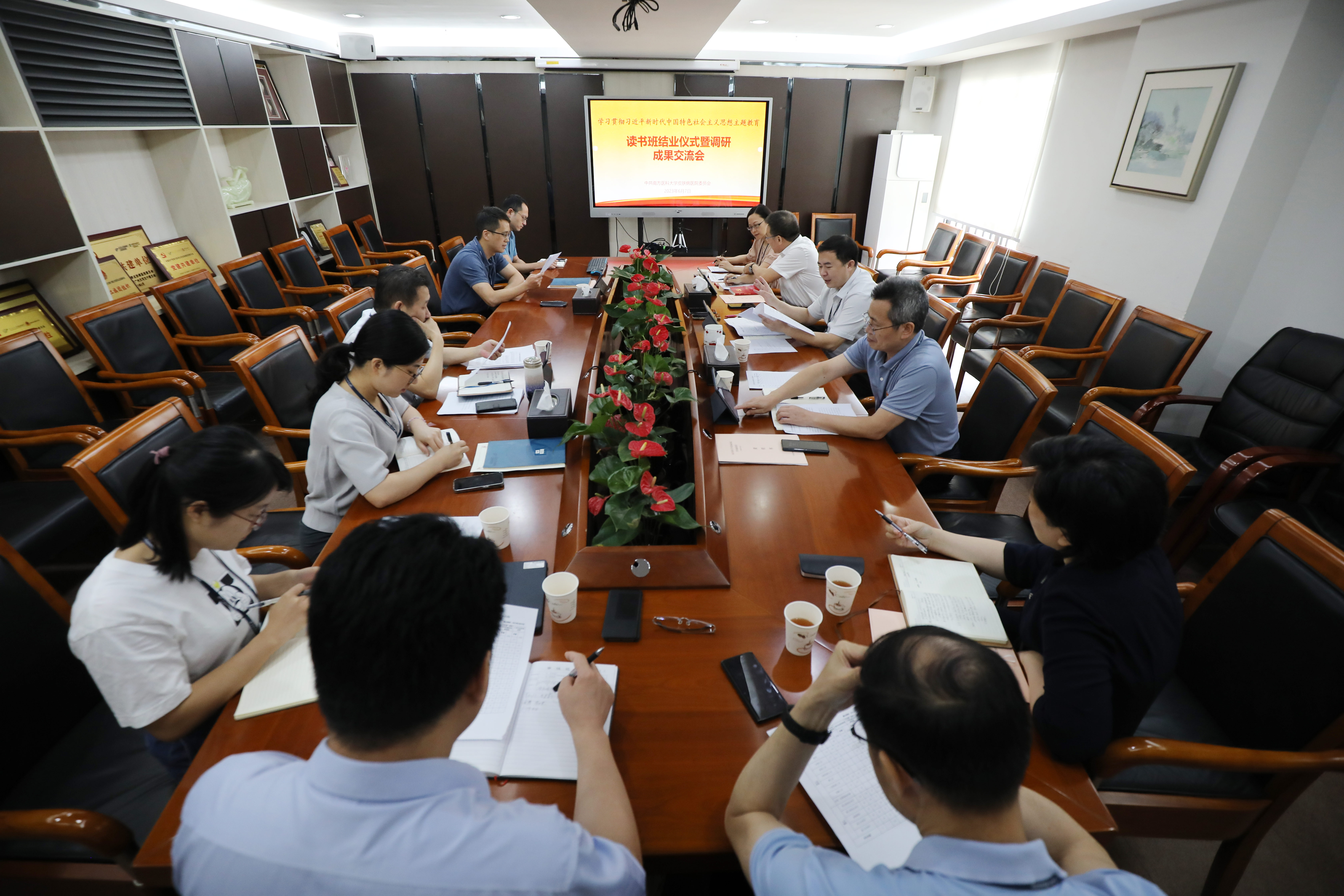 6月7日,皮肤病医院党委举办学习贯彻习近平新时代中国特色社会主义思想主题教育调研成果交流会暨读书班结业仪式。会议由党委书记陈旭坚主持,医院党委领导班子成员、相关科室负责人及调研组联络员等参加了会议。