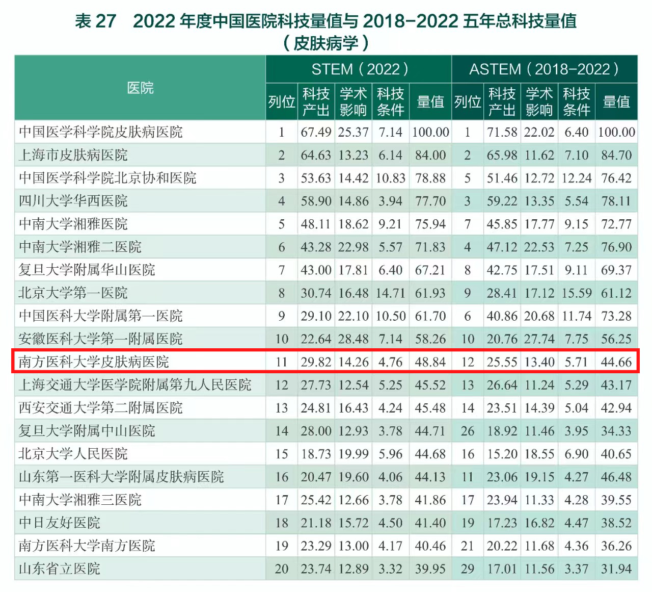7月6日,2022年度中国医院科技量值(STEM)暨五年总科技量值(ASTEM)发布会在北京召开。南方医科大学皮肤病医院荣登2022年度中国医院科技量值(STEM)皮肤病学榜单,位列全国第十一,连续5年广东省第一!