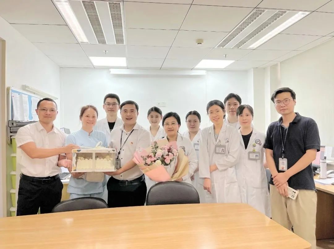 8月18日上午,我院领导班子带队深入医院各个科室,慰问一线的医师们,为他们献上鲜花和蛋糕并致以节日的问候,感谢他们一直以来在岗位上的默默付出。