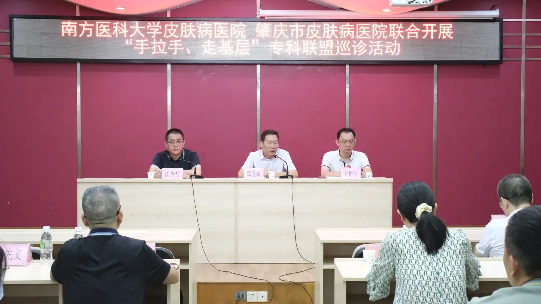 8月12日,南方医科大学皮肤病医院联合肇庆市皮肤病医院开展“手拉手、走基层”专科联盟巡诊活动。此次活动涵盖党建共建、惠民义诊、学术讲座、医院管理高质量发展研讨会等丰富内容。