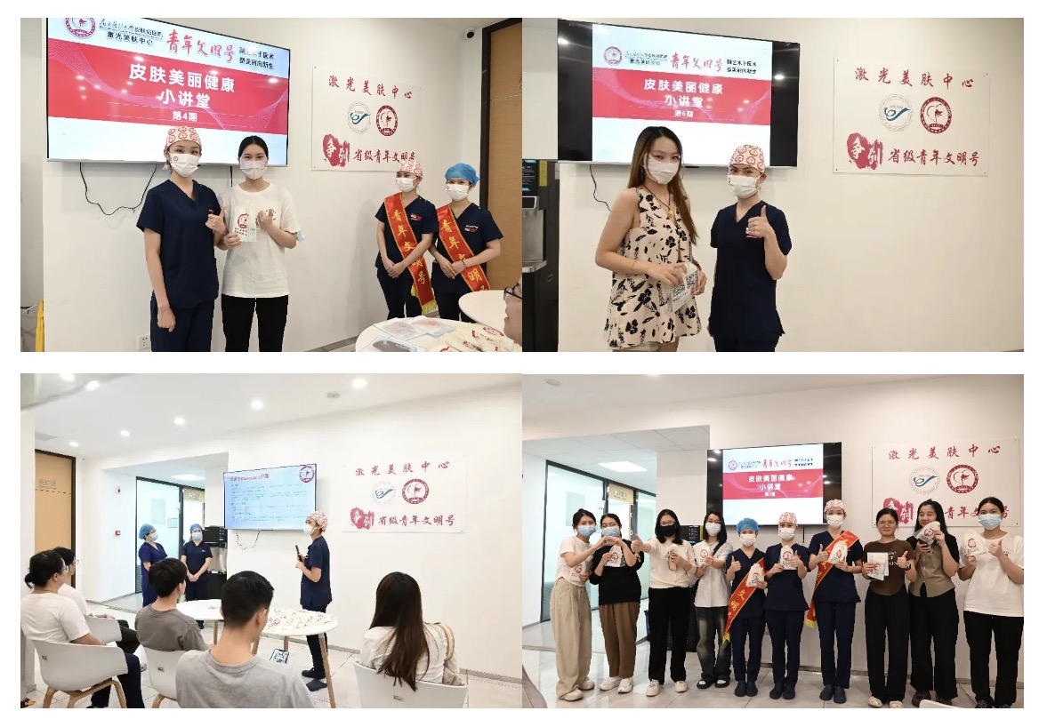 近日,南方医科大学皮肤病医院激光美肤中心青年文明号集体积极开展“奋进新征程 号声更嘹亮——青年文明号开放周”系列活动,通过“皮肤美丽健康小课堂”“科普进校园”“健康义诊下基层 真情服务暖民心”“互访互学促提升,携手共建青年文明号”等丰富多彩的活动形式,将文明创建工作与日常临床工作相结合,为弘扬文明风尚、展现青春风采、创造优异业绩贡献青春力量。
